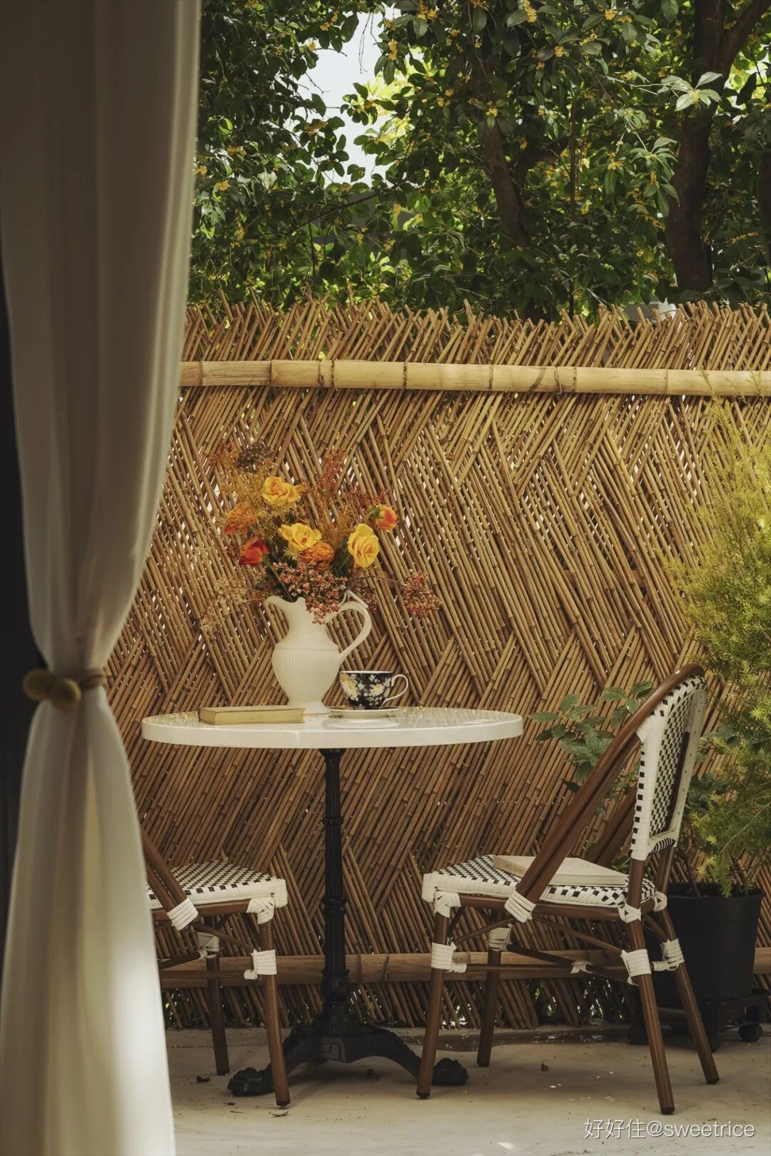 小院子封闭了原先的出入口,用竹篱笆重新围合边界,使得空间更为私密和清静,受疫情影响,小花园还在建设中,待以后补图。