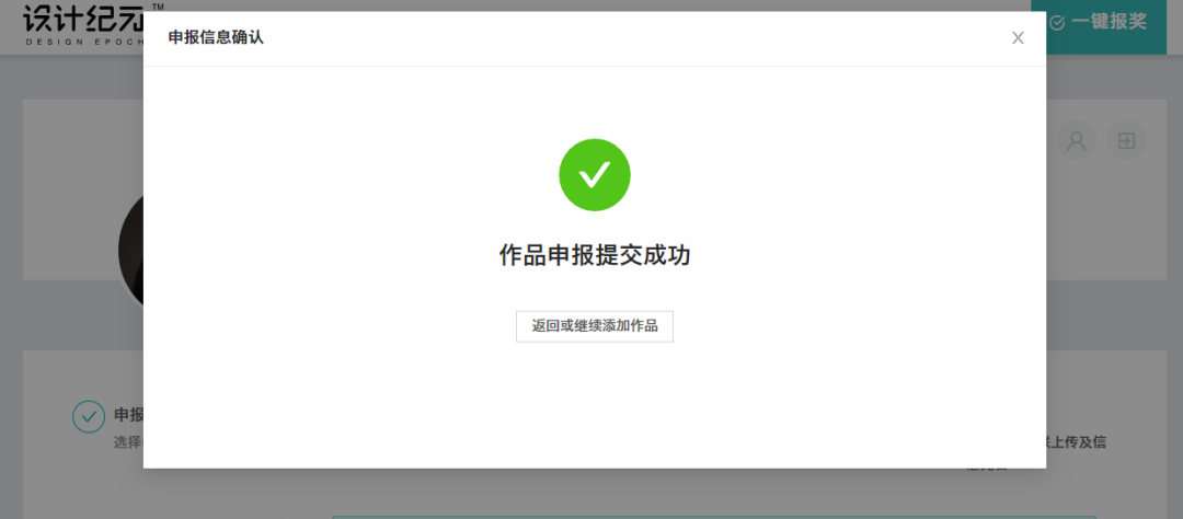 12、作品申报提交成功,如需增加参评作品可点击继续添加
