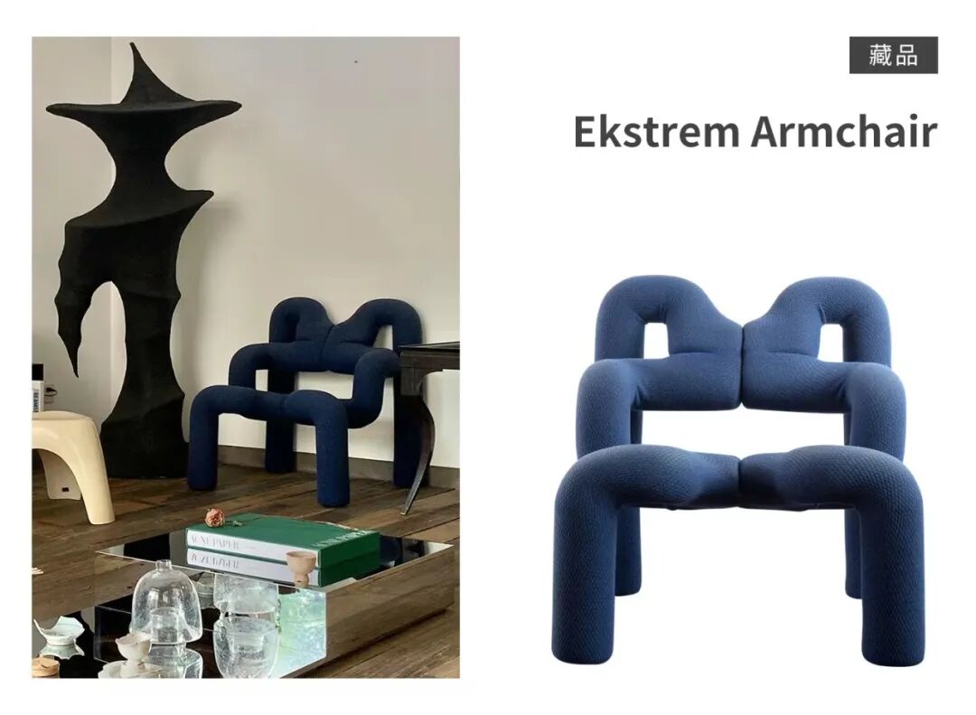 走进客厅,一眼就能看到三件重量级中古家具:挪威后现代家具设计之父Terje Ekstrom的代表作Ekstrem扶手椅、野口勇的经典灯具,和勒·柯布西耶设计、被MoMA收藏的LC4躺椅。