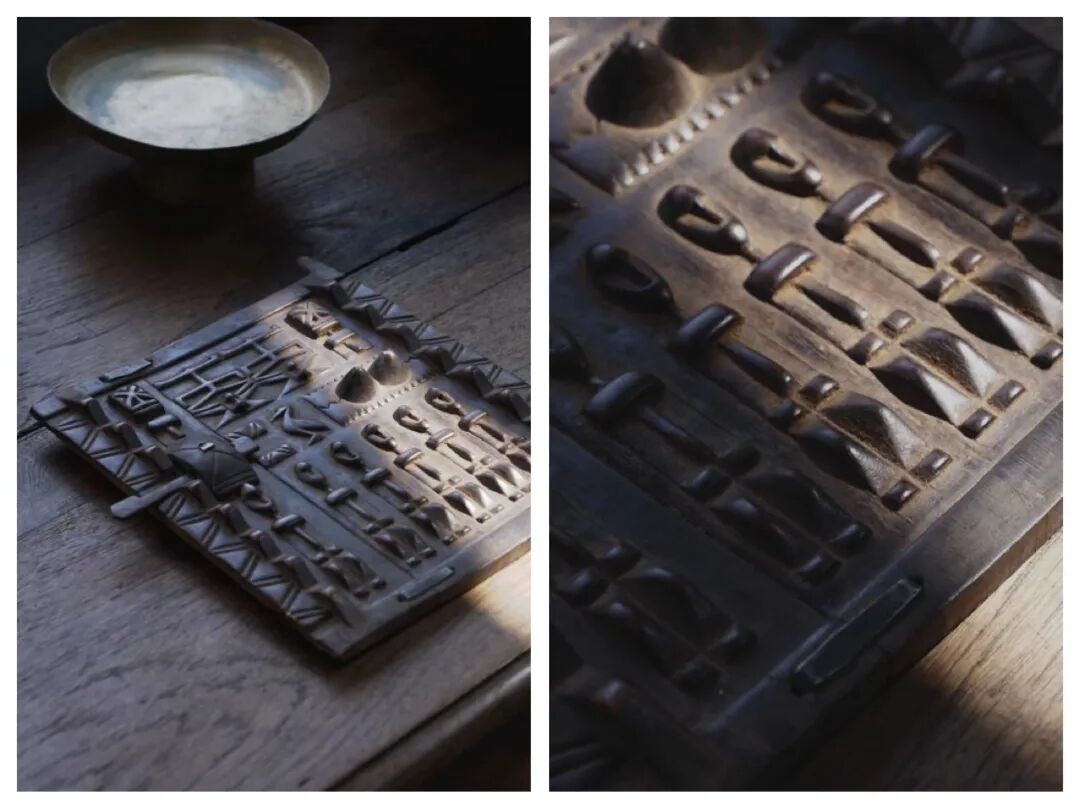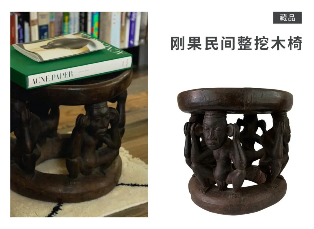 之所以说每一件古道具的造型都是独一无二的,一来是因为它们很多都是就地取材。这点在非洲的一些老物件身上尤为明显,像是这张埃塞俄比亚的木椅,歪歪扭扭的造型看起来设计感十足,但实际上这很可能就是当时的工匠找了附近的一棵树随手做的,树本身就长歪了。