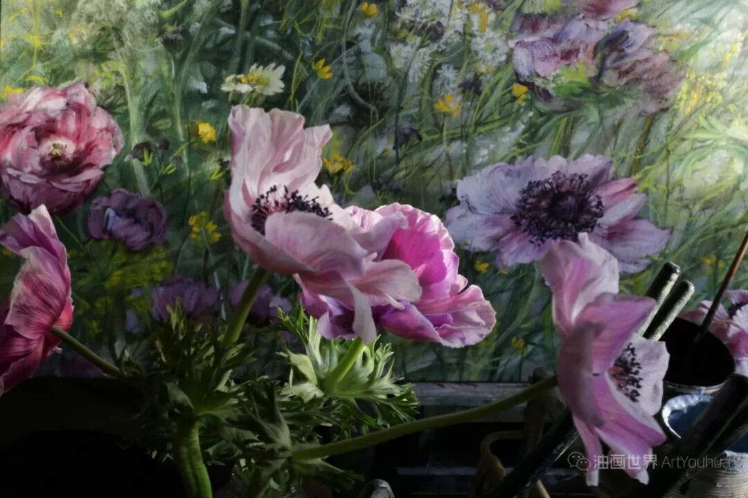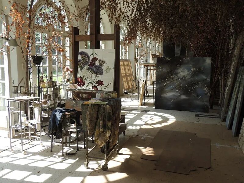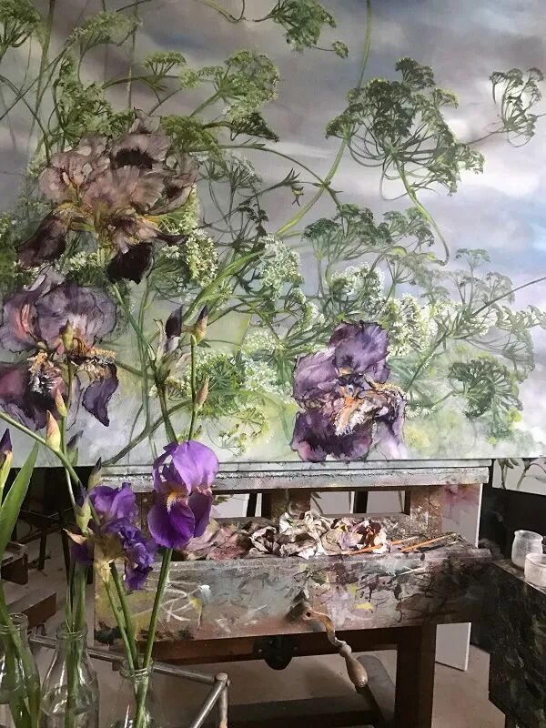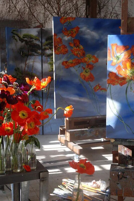 Claire Basler隐匿在古堡中的画室是每个爱好艺术的人心目中梦寐以求的工作室模样。Claire告诉我们,在她儿时的记忆中父亲就拥有一个漂亮的花园。那时的她对于鲜花的名字并无印象,但那种视觉的记忆却非常清晰。而在今天Claire的工作室,花园里三四十种的鲜花对于她来说就像是精灵的赏赐。她把这些花搬进自己的工作室,赏花作画,在自然中完成自己的艺术作品是她此生最专情的事。