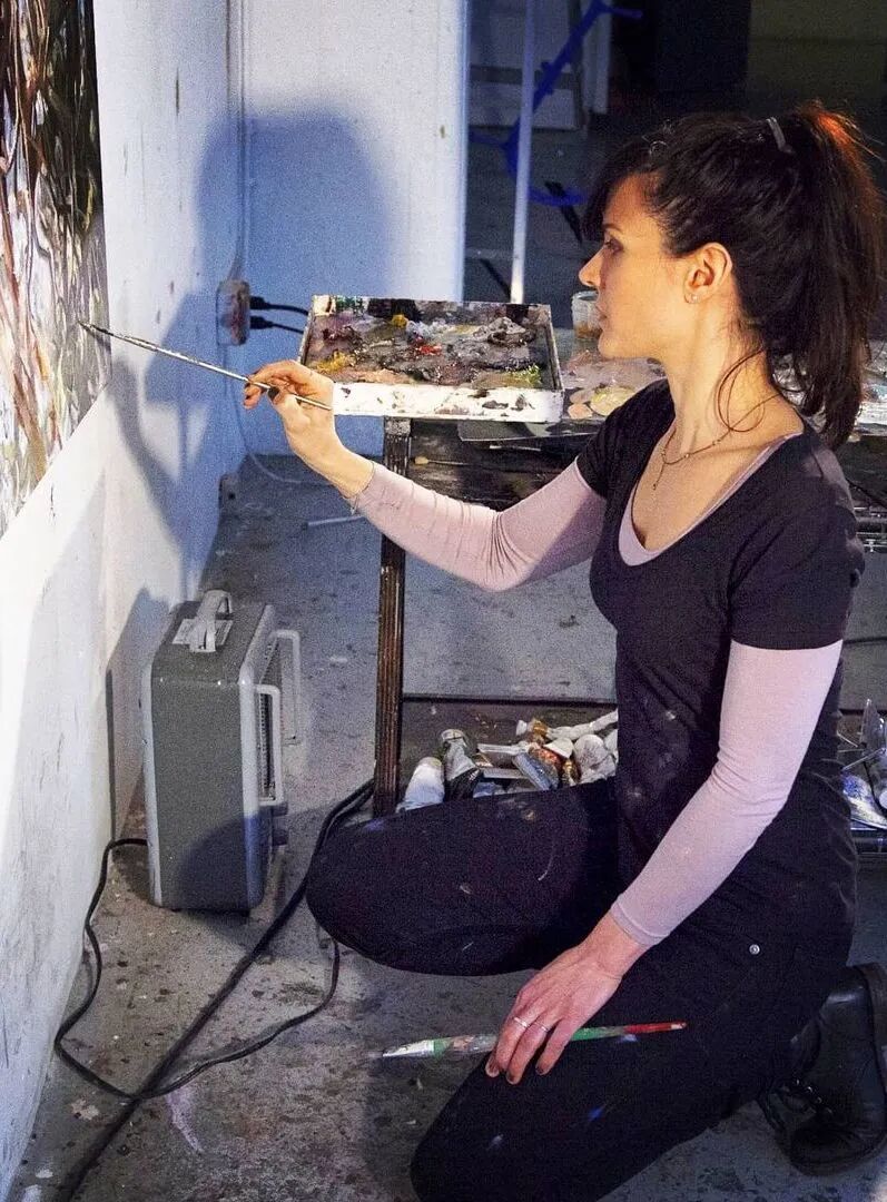 她说:“我的意图是将我人生经历中的亲密和脆弱性转化为绘画,让其他人与之联系。绘画是你需要在同一个房间里才能感觉到它们表面的能量的物体。我希望我的作品尽可能亲密,绘画的表面像化石一样,记录每一个手势和决定。”