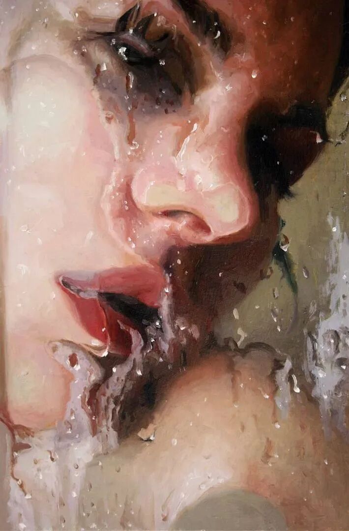 Alyssa Monks善于用水的不同状态来为画面增添各种各样的人物情绪,旨在表达人类最基本的体验,包括爱、失去和寻找自我。她主要专注于人物形象,在亲密、大规模的作品中描绘自己、熟人和爱人,表现出自然主义。