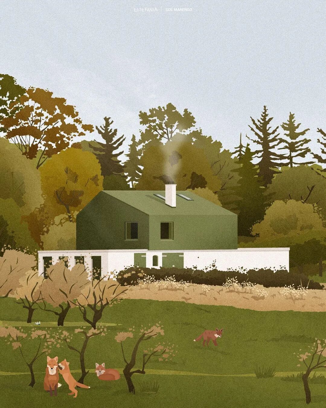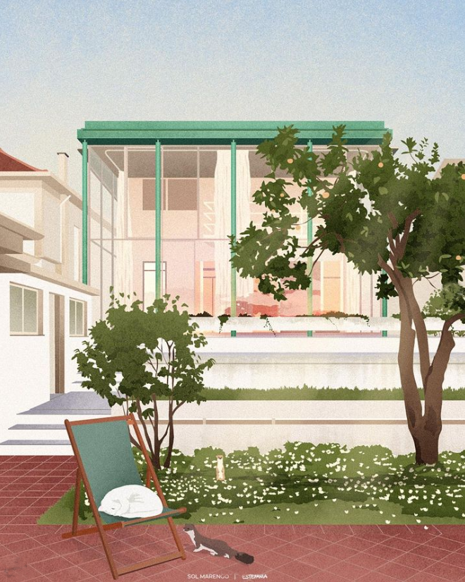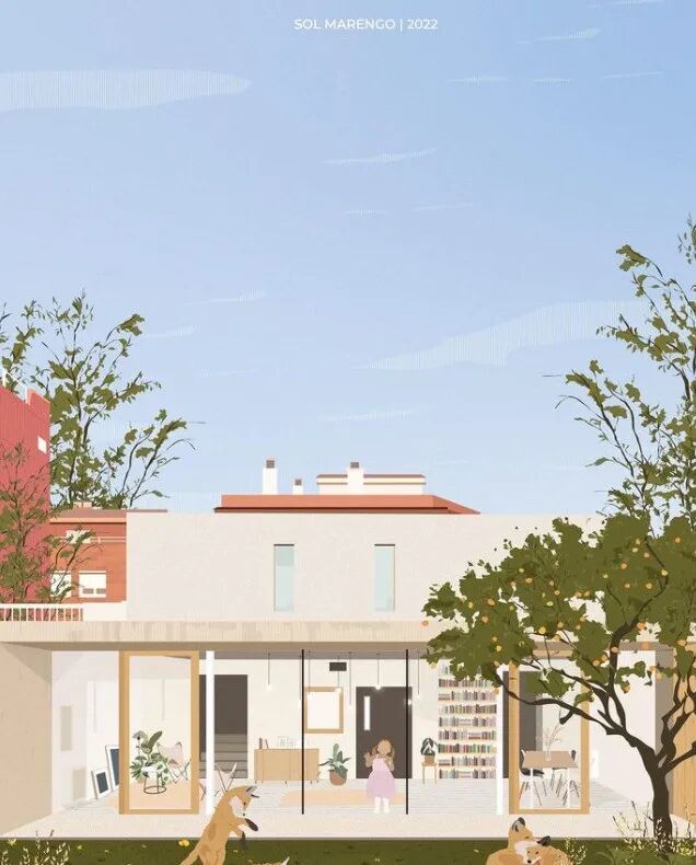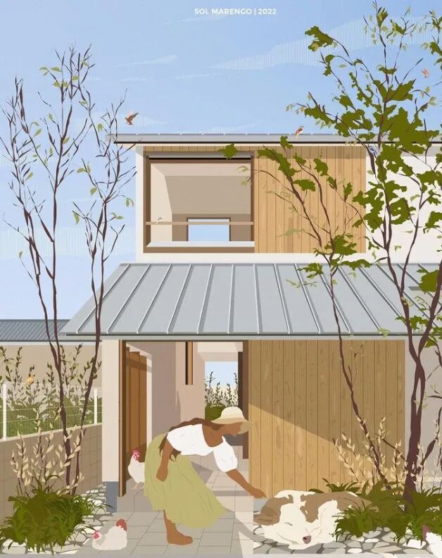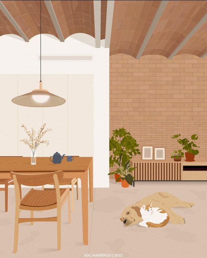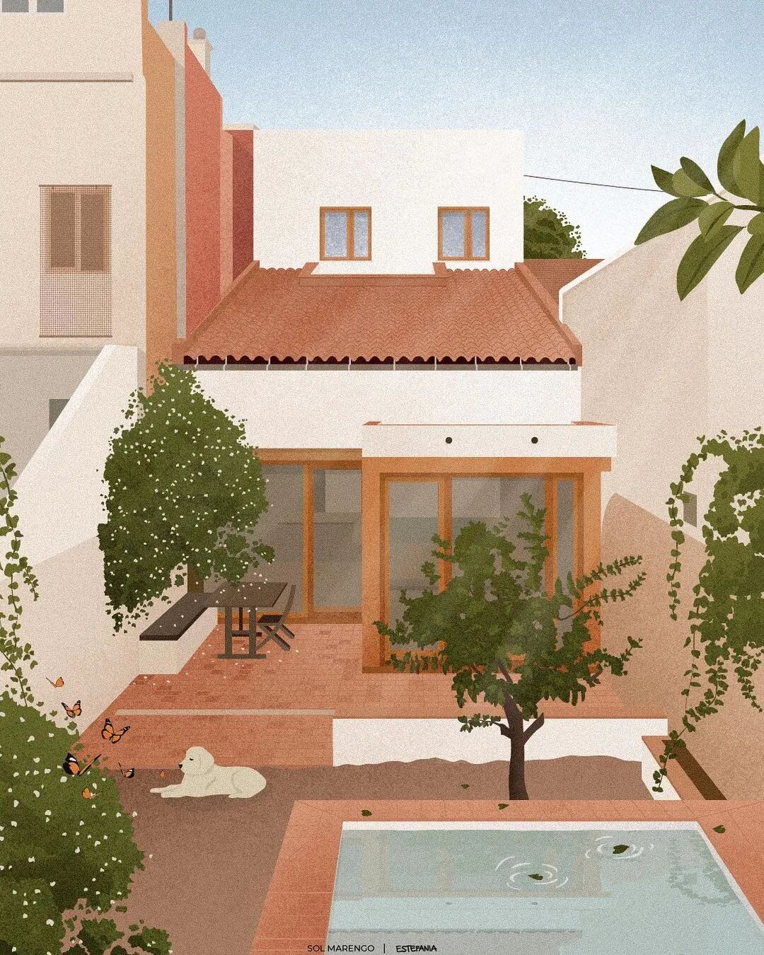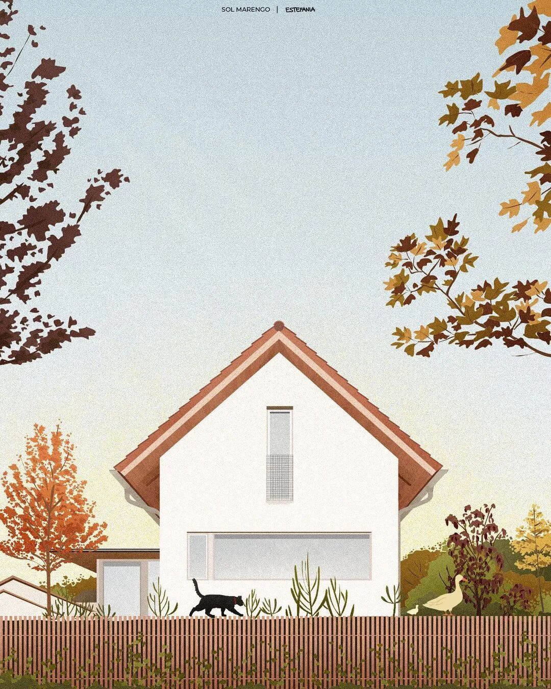 这些插画来自艺术家ins@sol_ms,画面里的家或简单温馨,或温暖明媚,每一幅插画都描绘出了一个理想幸福的家。