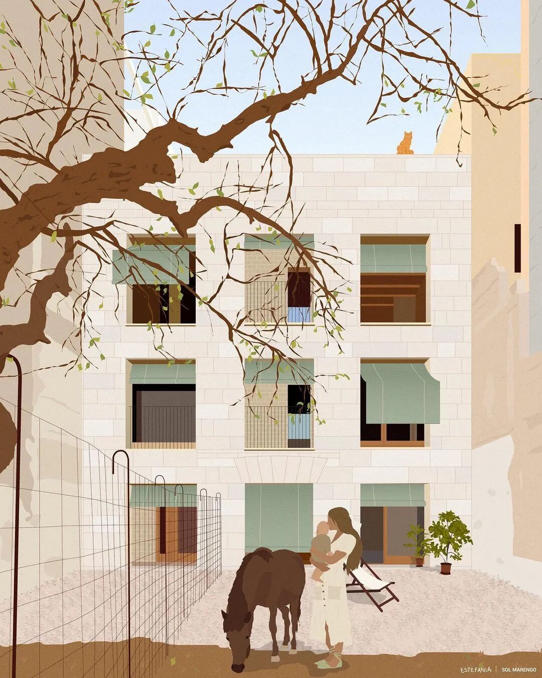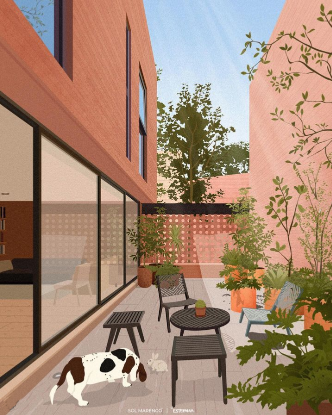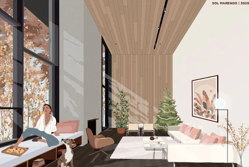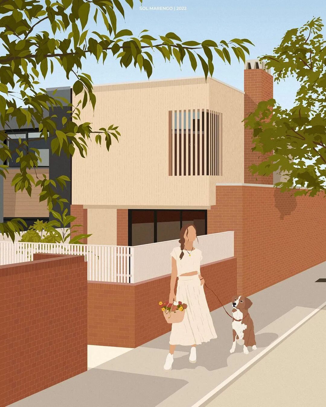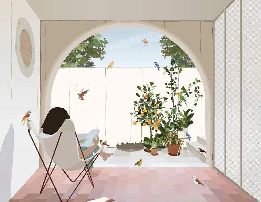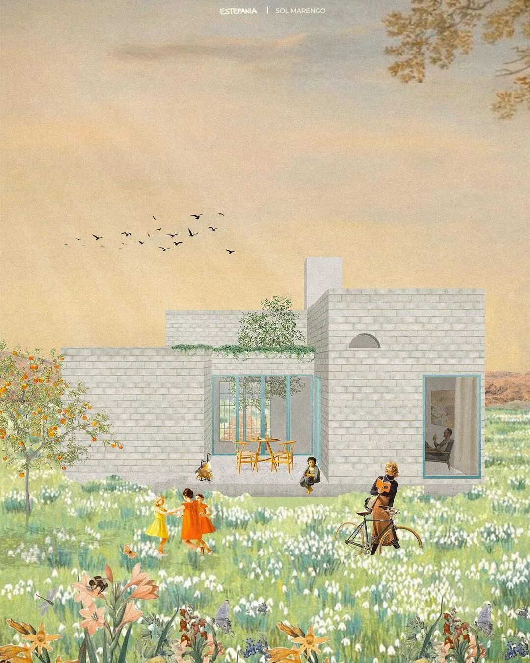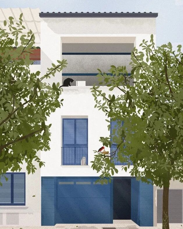 这些插画来自艺术家ins@sol_ms,画面里的家或简单温馨,或温暖明媚,每一幅插画都描绘出了一个理想幸福的家。