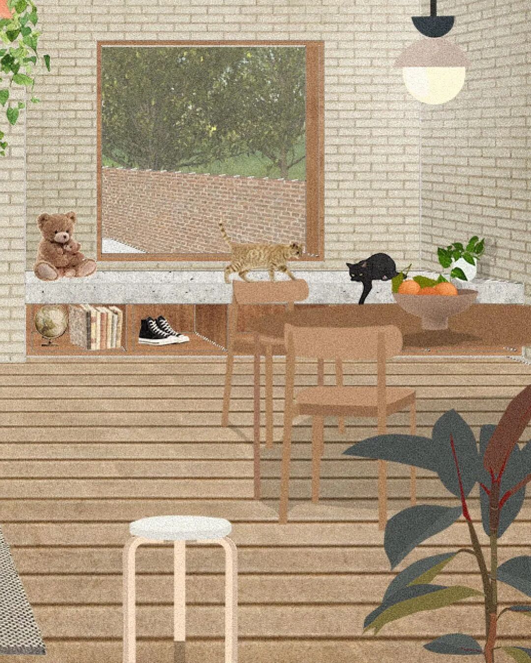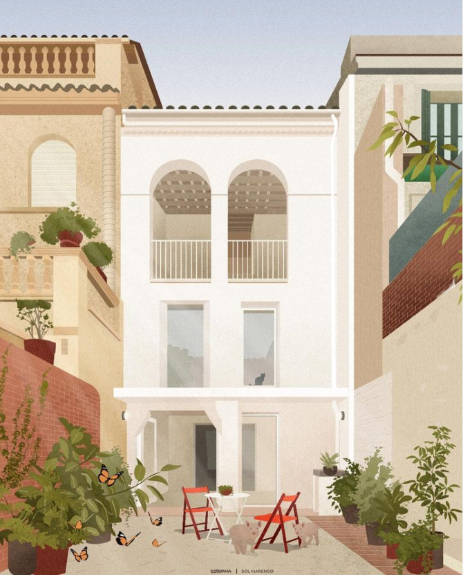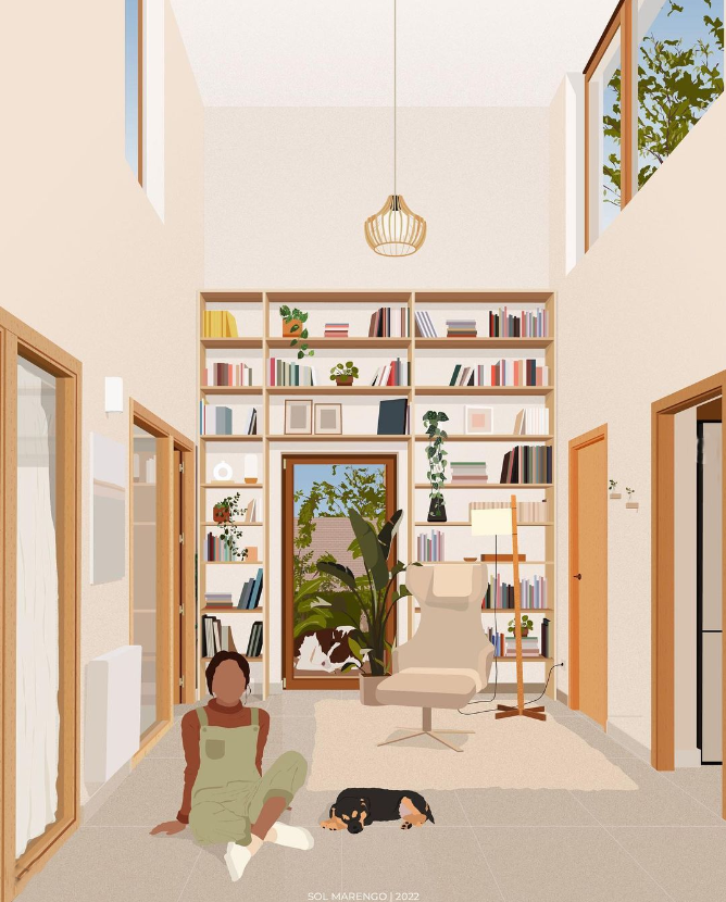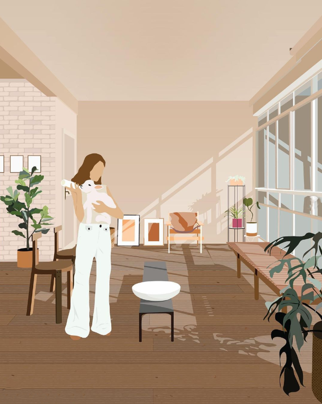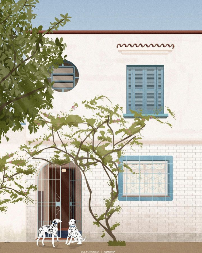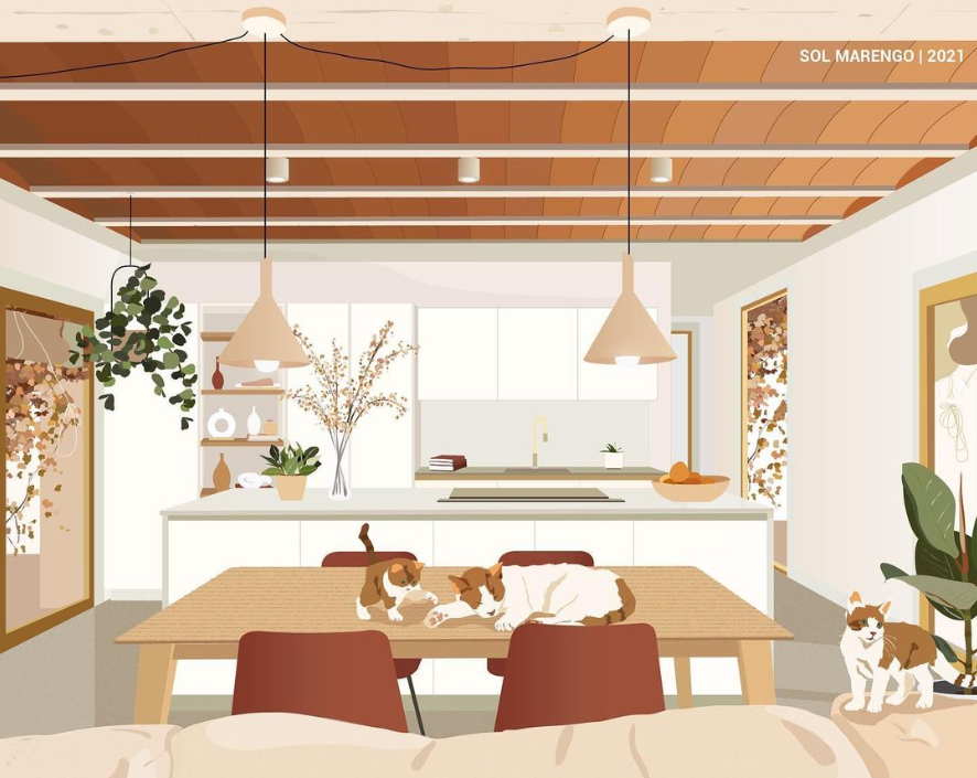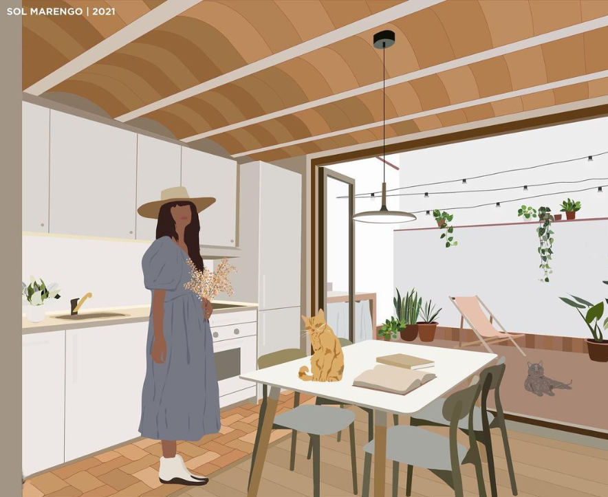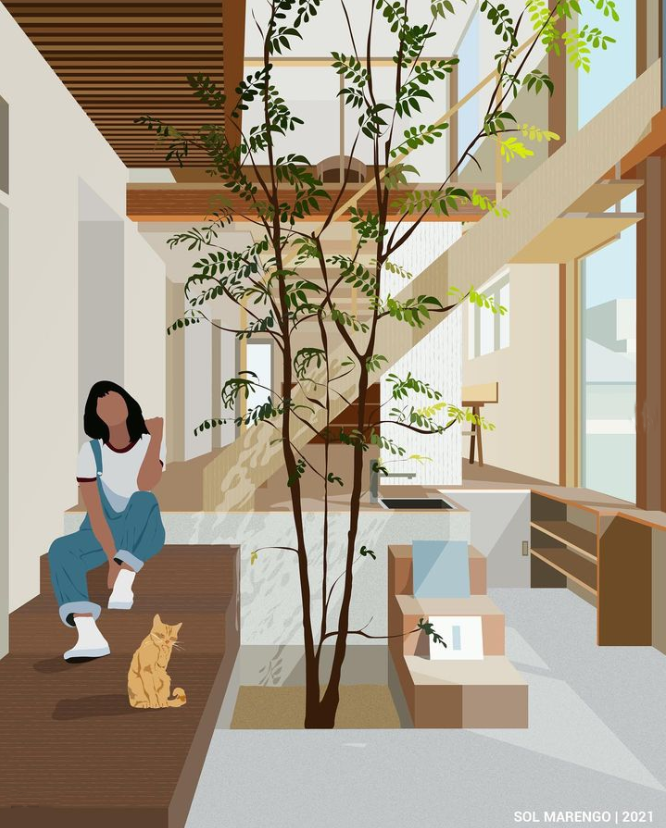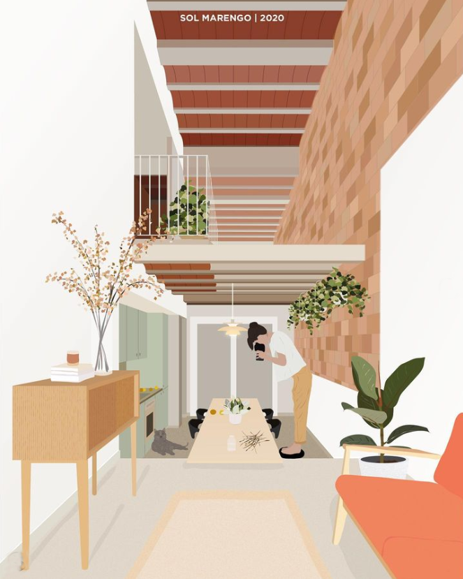 这些插画来自艺术家ins@sol_ms,画面里的家或简单温馨,或温暖明媚,每一幅插画都描绘出了一个理想幸福的家。