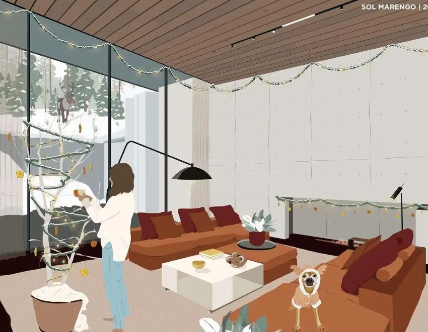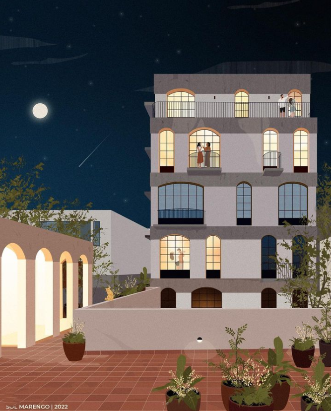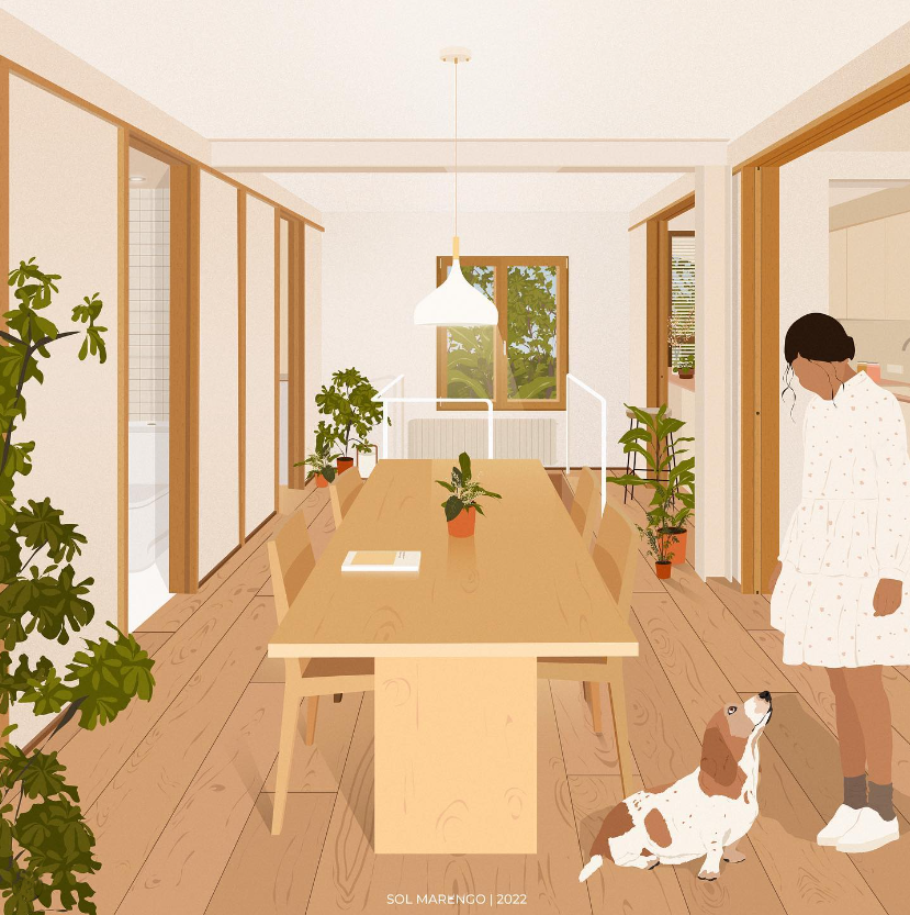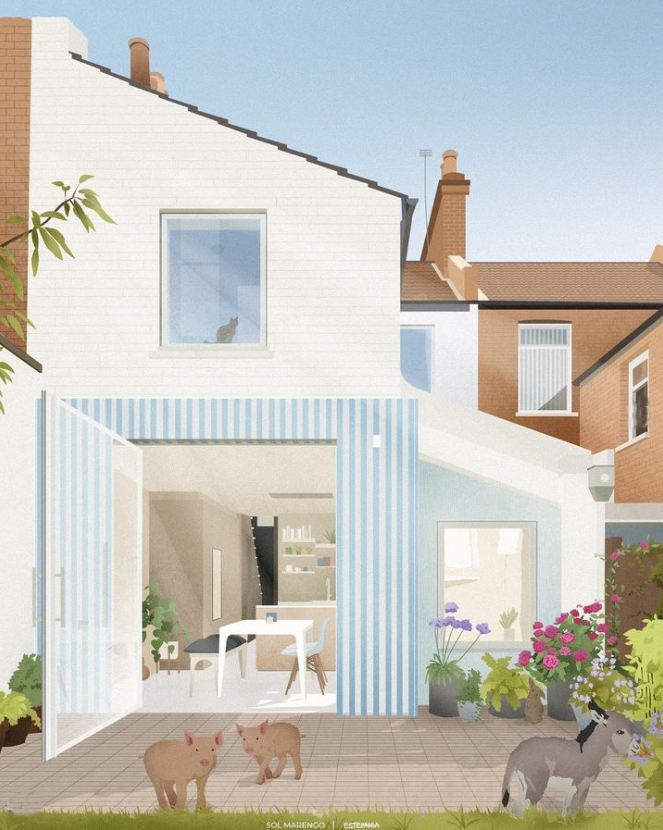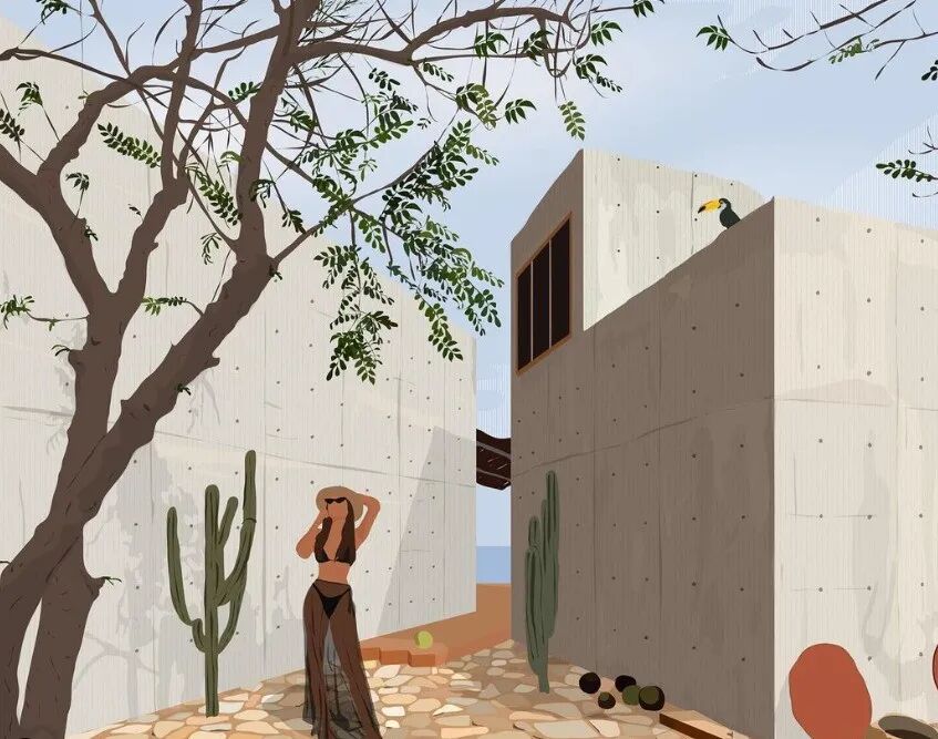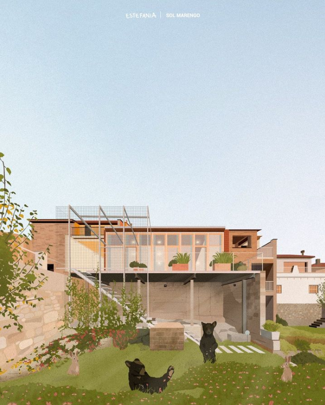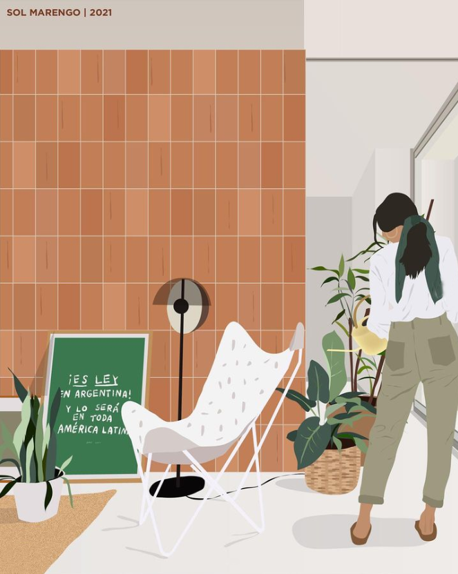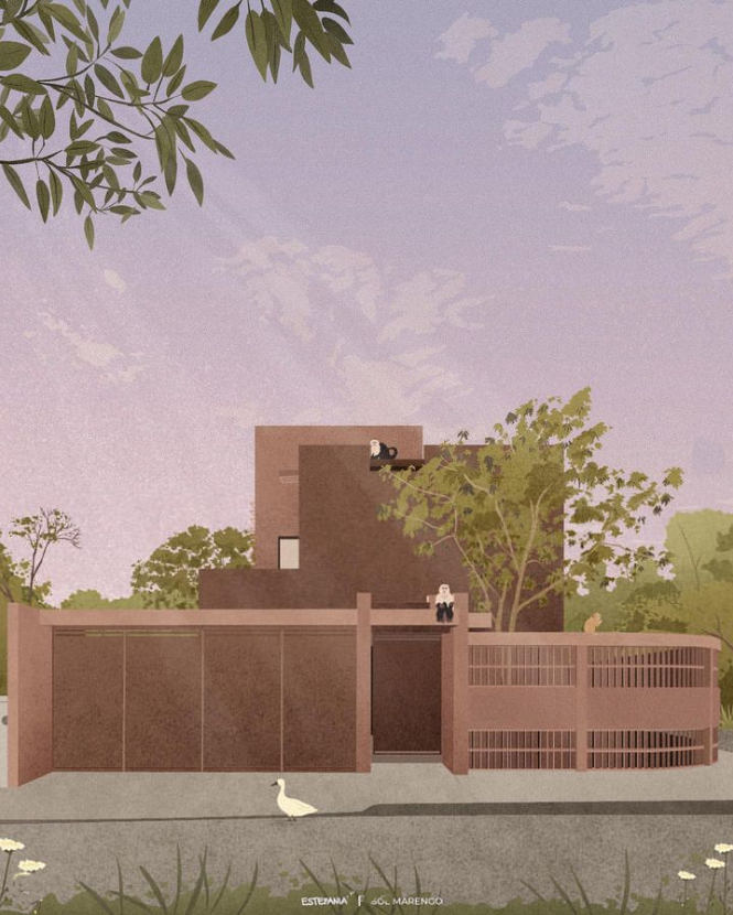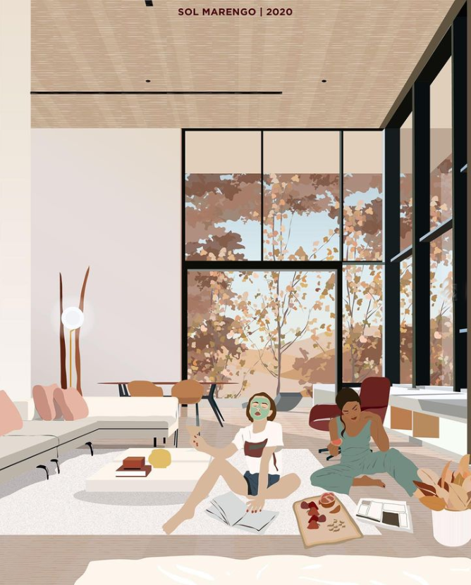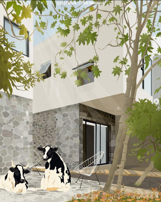 这些插画来自艺术家ins@sol_ms,画面里的家或简单温馨,或温暖明媚,每一幅插画都描绘出了一个理想幸福的家。