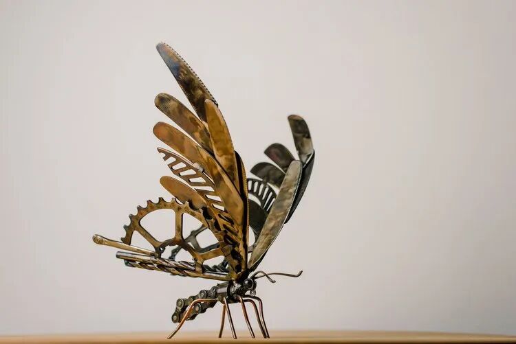 废旧金属,是很多环保主义艺术家常常选择的材料,在他们看来,这是一种用来制作雕塑的绝佳材料,既能将废品充分利用,作品还能展现出工业美感。利亚·杰弗里就是一位因为将废金属转化为精致的动物雕塑,而广为人知的艺术家。