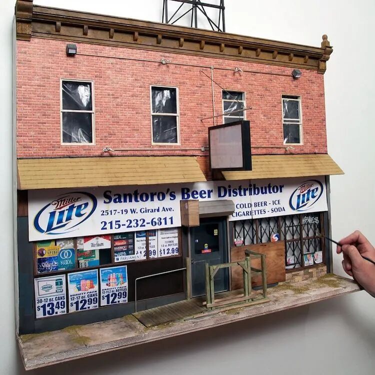 在很多人看来,1:12的比例制作而成的微缩建筑,就像玩具屋一样,但是千万不要小看德鲁·莱什科的作品,他的每一个作品中所包含的细节,都无法轻易数得清楚,即便将它们定义为玩具屋,那也是一般人买不起的玩具屋。德鲁·莱什科的微缩雕塑作品不仅频频在国际上展出,还被各种国家级的博物馆、企业以及世界各地的私人收藏。