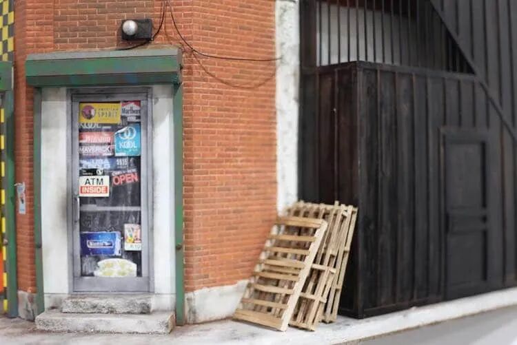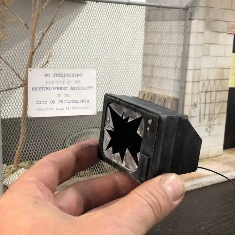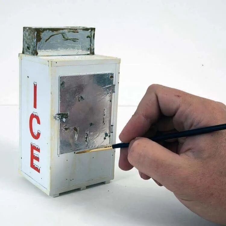 从德鲁·莱什科的微缩作品中,我们可以看到非常多的元素,比如80年代的露营车、冰箱、甚至垃圾桶,每一个细小的物件都被严格按照1:12进行还原,为了追求更精确的比例,这位艺术家的创作过程可以用严苛来形容,制作每一个部分,他都要先通过个人观察,然后再拍照观察,二者对比之后,再进行渲染建筑的每一个细节。