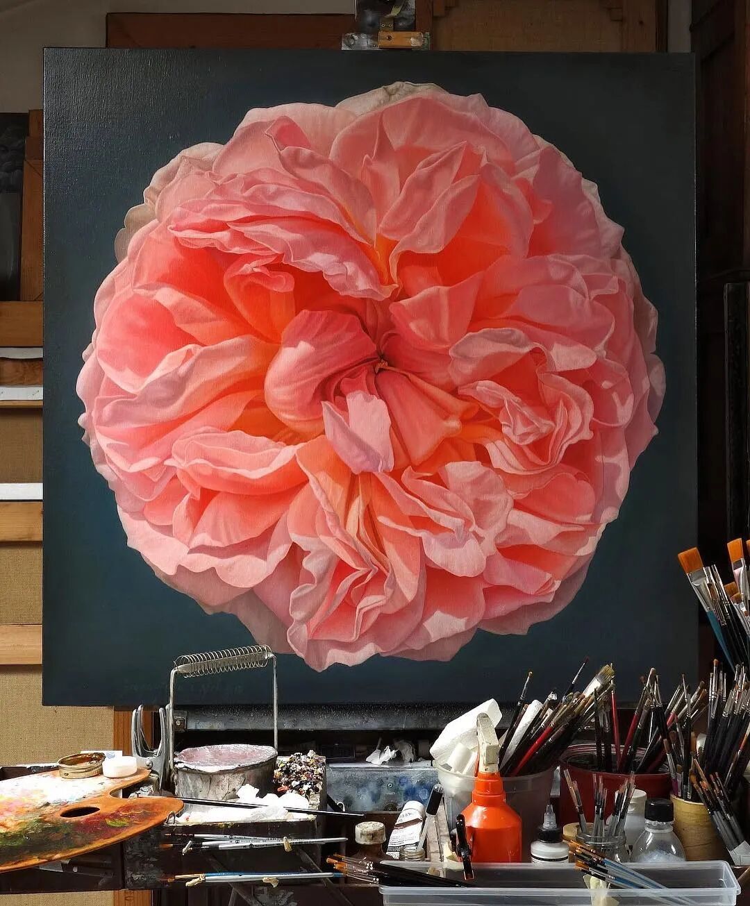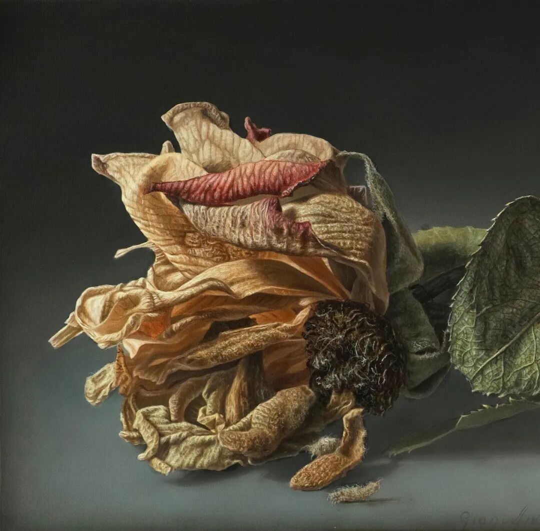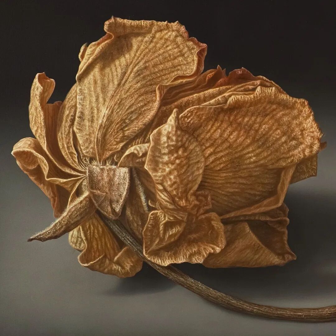 超写实绘画想必大家都不陌生了,其中专门描绘超写实花卉的艺术家也不在少数,只不过,大多人画花只是根据它的外形、姿态和尺寸,进行照片极的还原,尽管刻画得非常到位,但也很难带给人一种直抵内心的震撼感。