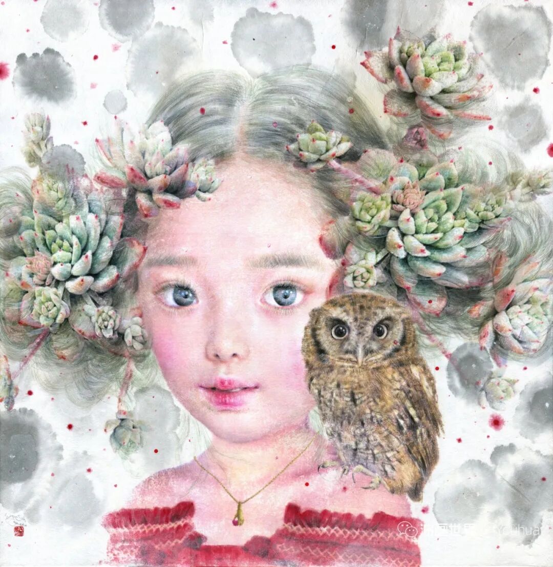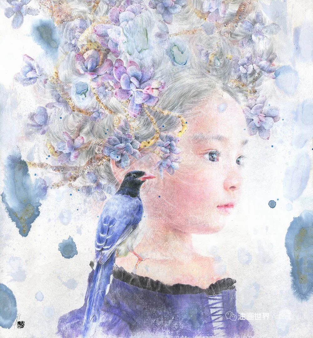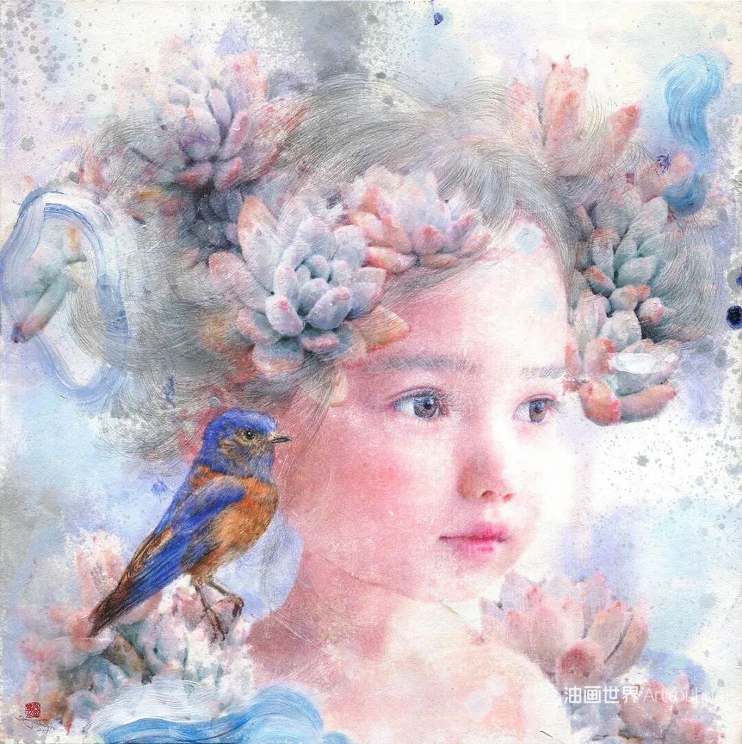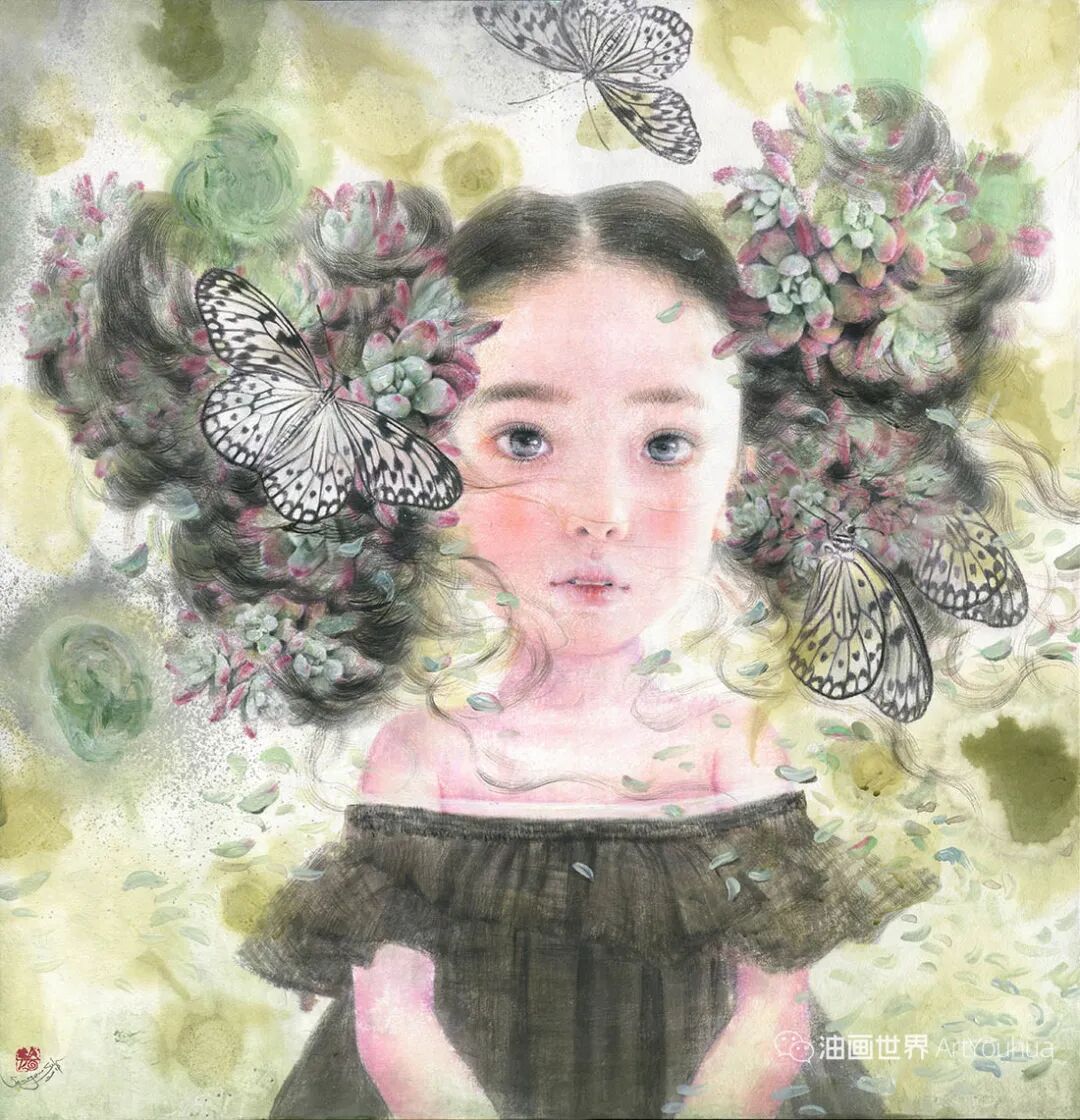韩国纸和水彩画,墨水,女孩,各种生命形式和工具。所有这些的结合创造了一种梦幻般的气氛,我想撼动和唤醒观众内心深处的纯粹情感。我相信,启蒙和改变可以让世界变得更加纯净和温暖。