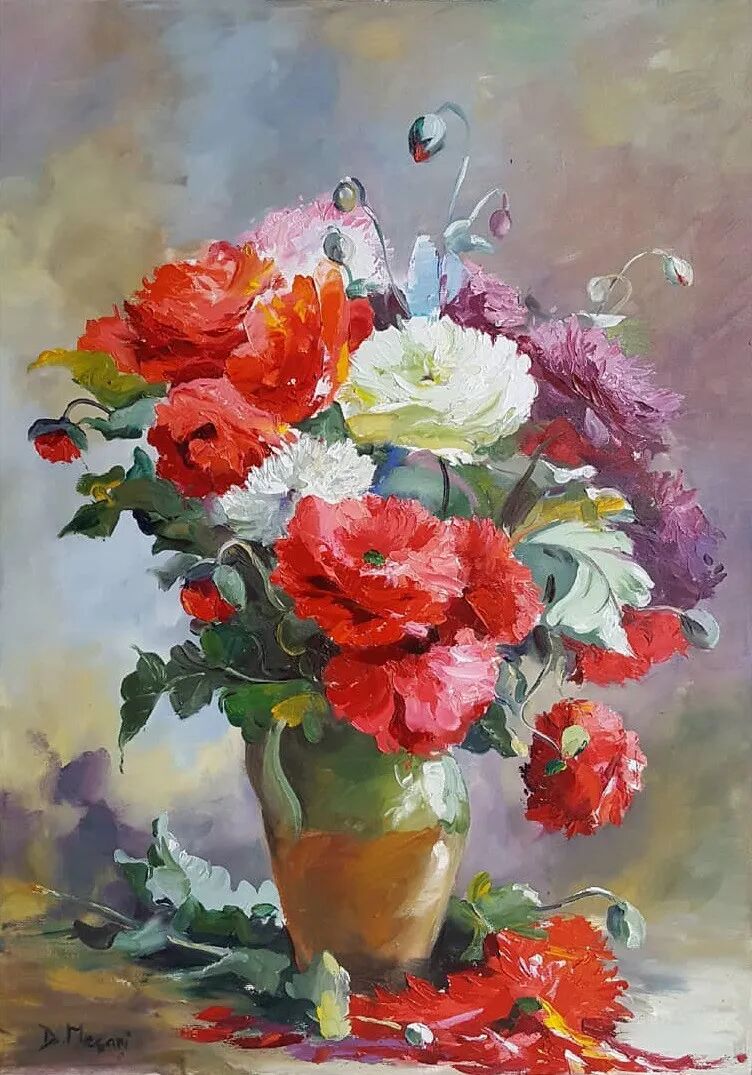 戴维德·梅卡尼(David Mecani ),阿尔巴尼亚画家。他笔下的花卉油画,色彩丰富、明亮鲜艳,真是太美了!