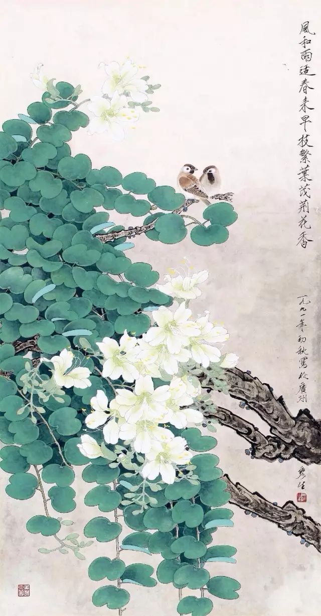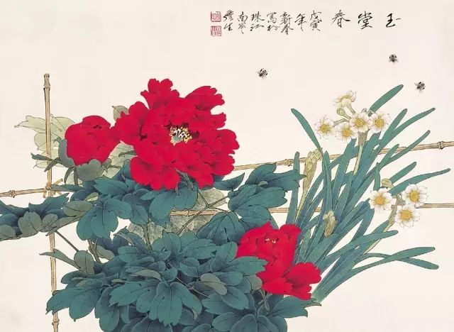 战国时期的文学家宋玉在《登徒子好色赋》中曾形容美女“增之一分则太长,减之一分则太短;着粉则太白,施朱则太赤”,创作一幅精品牡丹能有恰到好处的境界,也是同出一辙的。