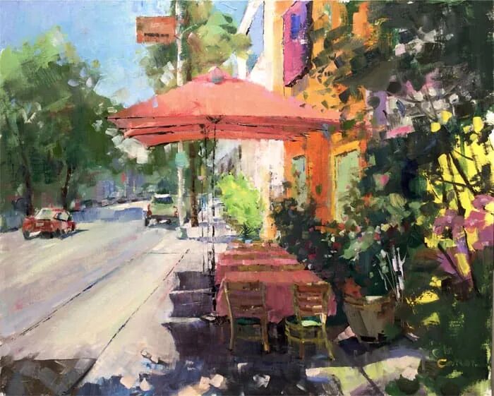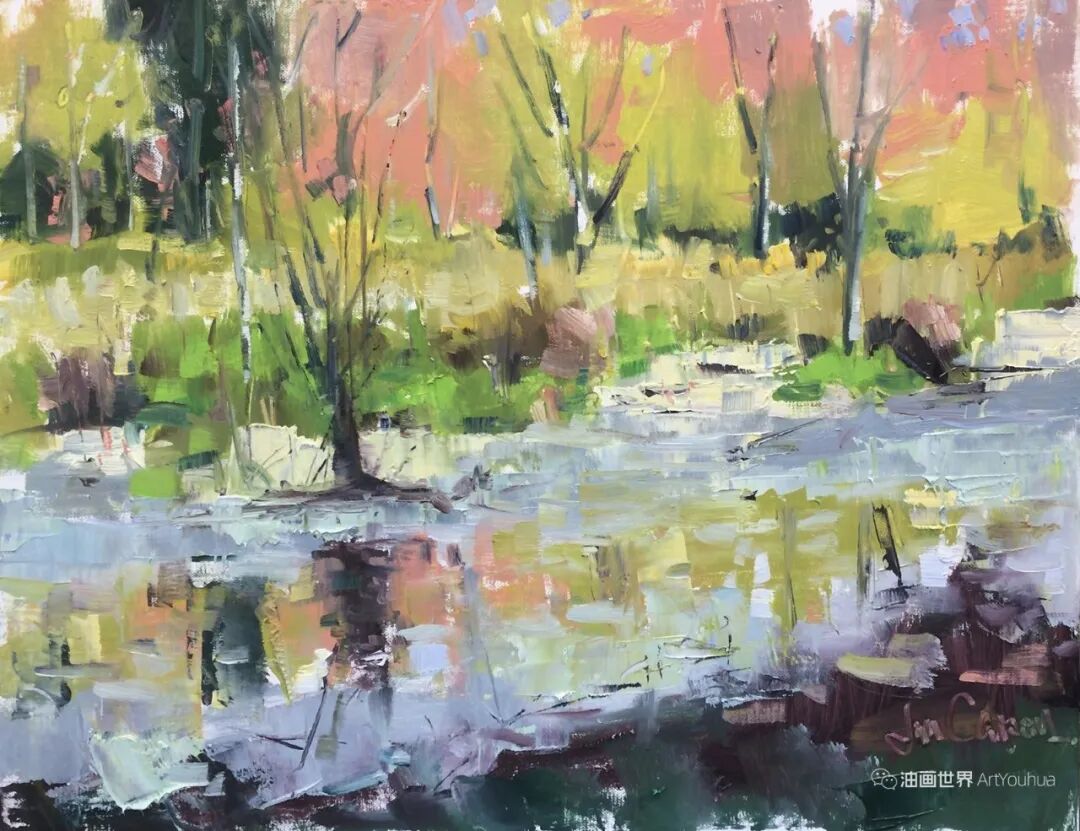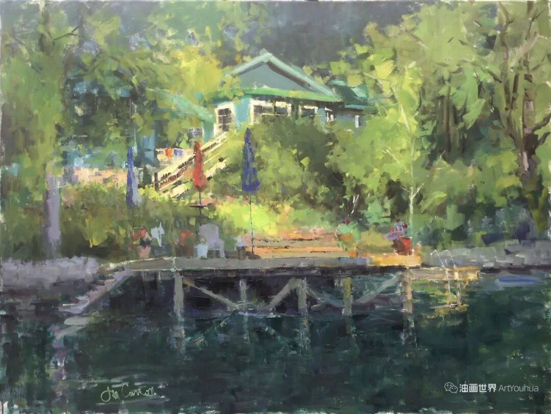 吉姆以其创造性的色彩平衡和大胆而自发的笔触而闻名。他最喜欢的主题是通过画作捕捉和携带光影模式,无论是户外景观、城市景观、室内或静物。