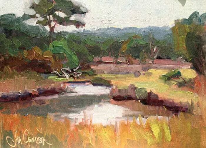尽管吉姆一直对绘画感兴趣,甚至在很小的时候,他在1989年开始上绘画课,他的艺术之旅在2003年达到顶峰,当时吉姆从法律实践中退休,搬到北卡罗来纳州的萨卢达,现在全职画画。