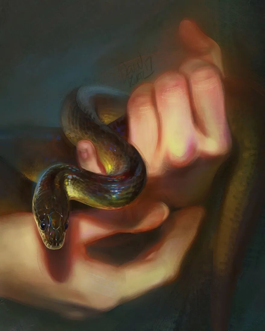 德文·埃尔·库尔茨最常创作的题材就是美丽的野生动物,以及想象出的神奇生物。强烈的超现实感,以及对颜色的极致把握,大大增强了这一系列作品的不真实感。通常完成这样一幅作品,需要2到10个小时的时间。在她看来,这是一个作品完成的过程,也是一个治愈的过程。她始终觉得,自己的作品拥有治愈性,能够带给那些伤病的人一些抚慰。