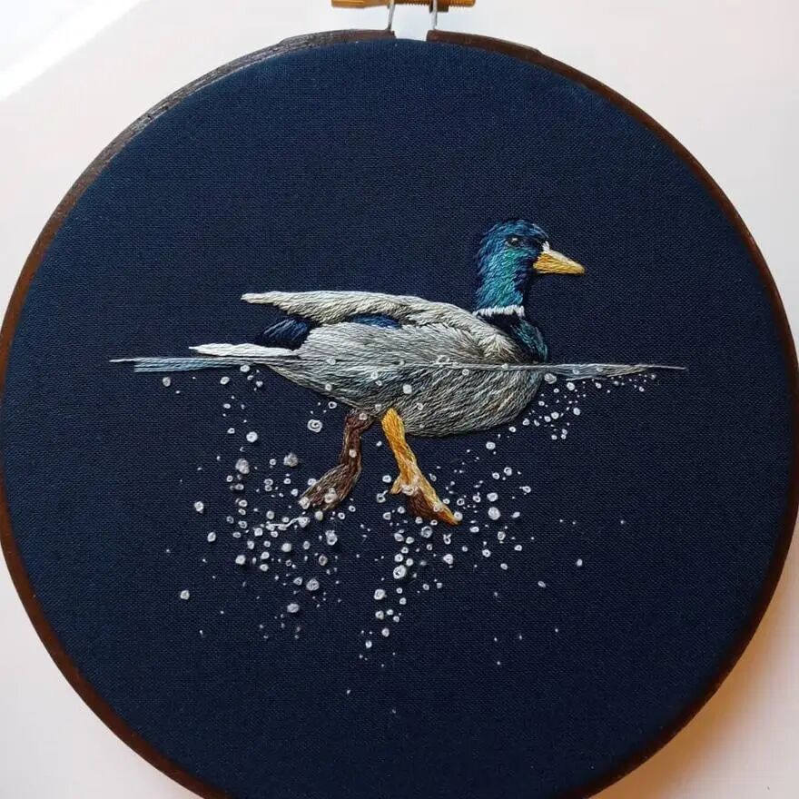 梅根·扎涅夫斯基经常用刺绣的形式,来呈现非常有画面感的艺术作品,她创作的一系列令人惊叹的浸没在水中的动物刺绣作品,其中大量的细节,就足够让人惊掉下巴。梅根·扎涅夫斯基的作品中,不仅呈现出了水的生动,还有每一只动物逼真的细节,鸭子、水鸟、海龟......它们的神态惬意,悠闲地划水,好像正在享受其中。