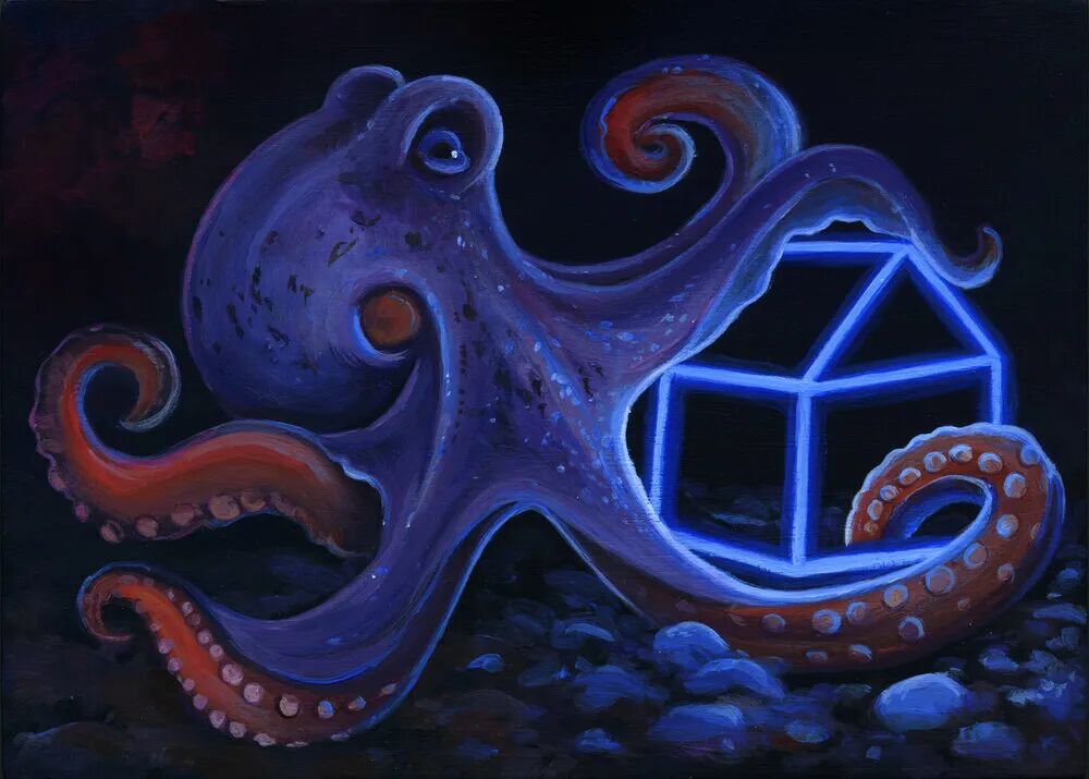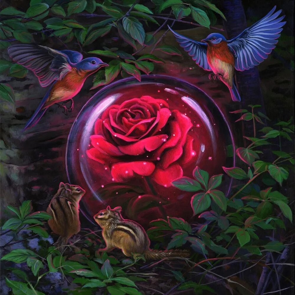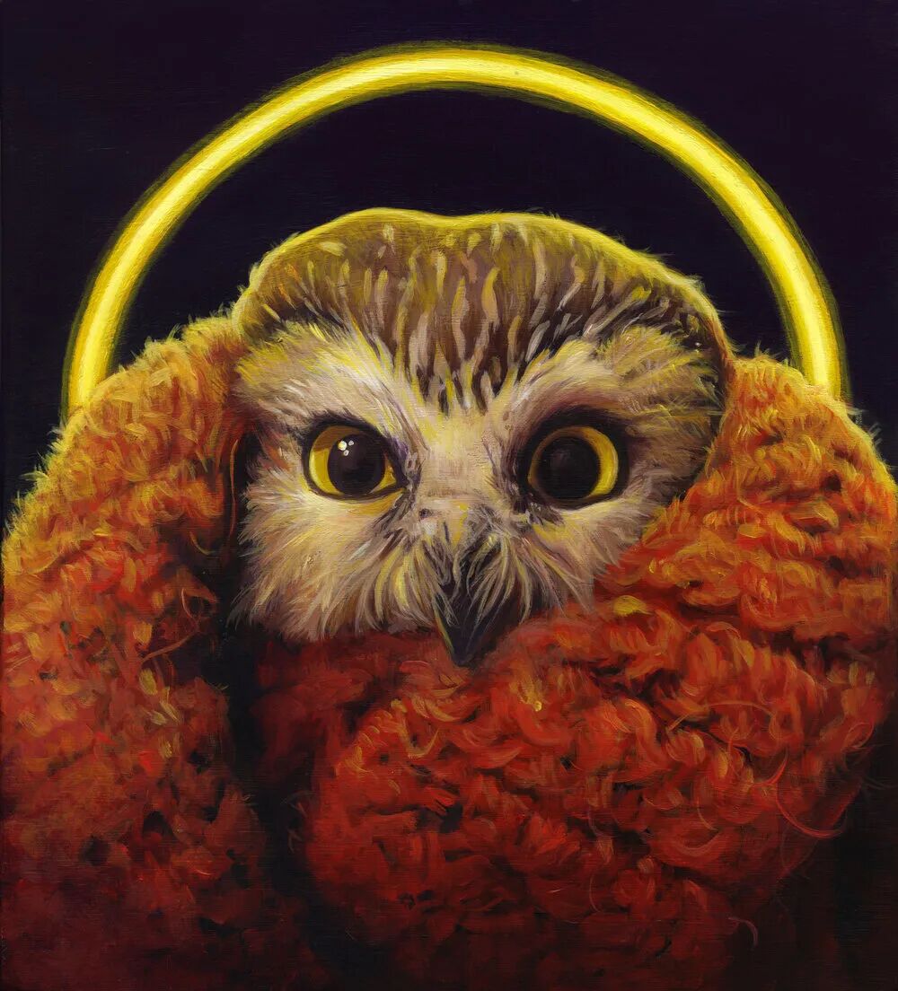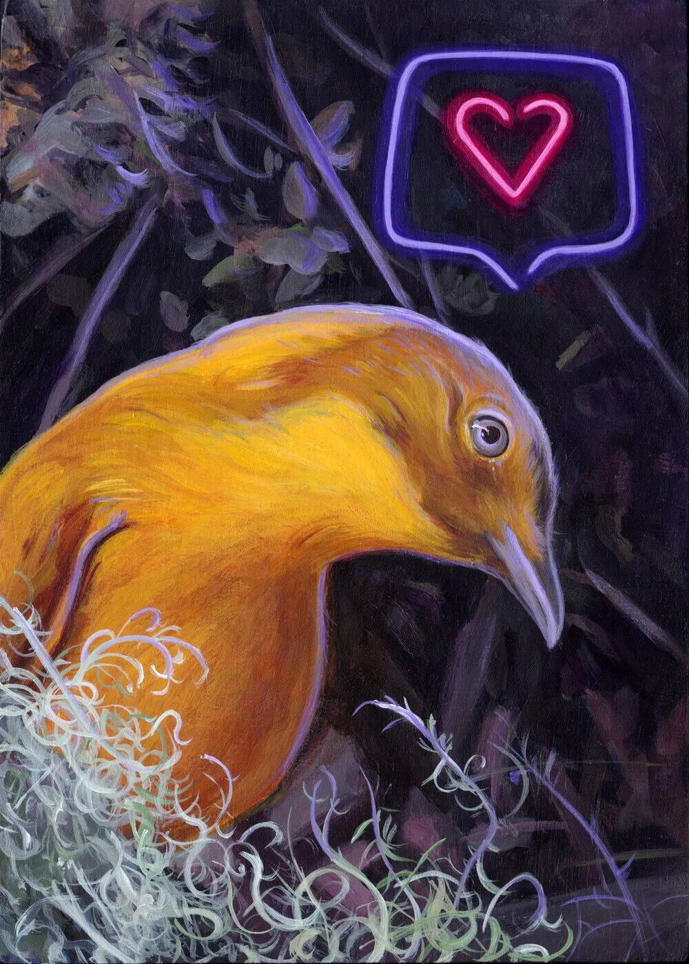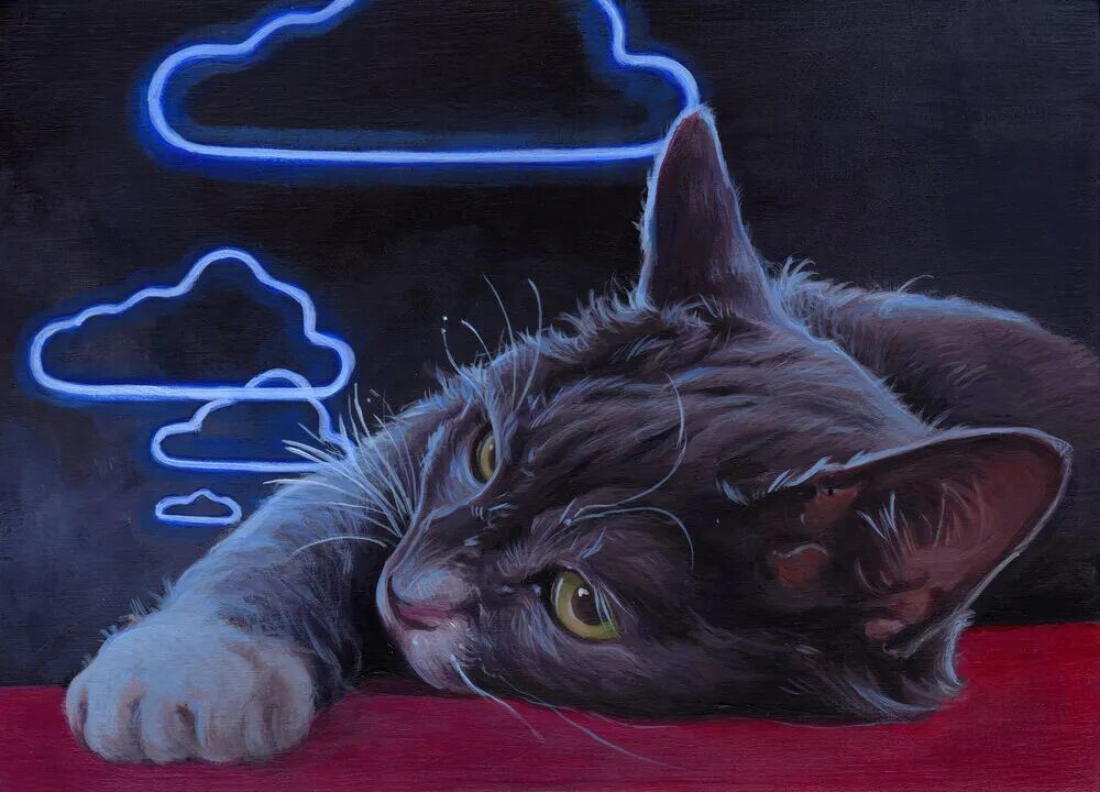 在简单了解完这位艺术家的故事后,我们才能读懂她画作中奇特场景表达的内容,各式各样的动物,似乎寓意着“外乡人”,而绚丽的霓虹灯则象征着大城市给人们带来的诱惑,一幅看似是在描绘动物画作的作品,实际上,在讲述这位画家自己的故事。