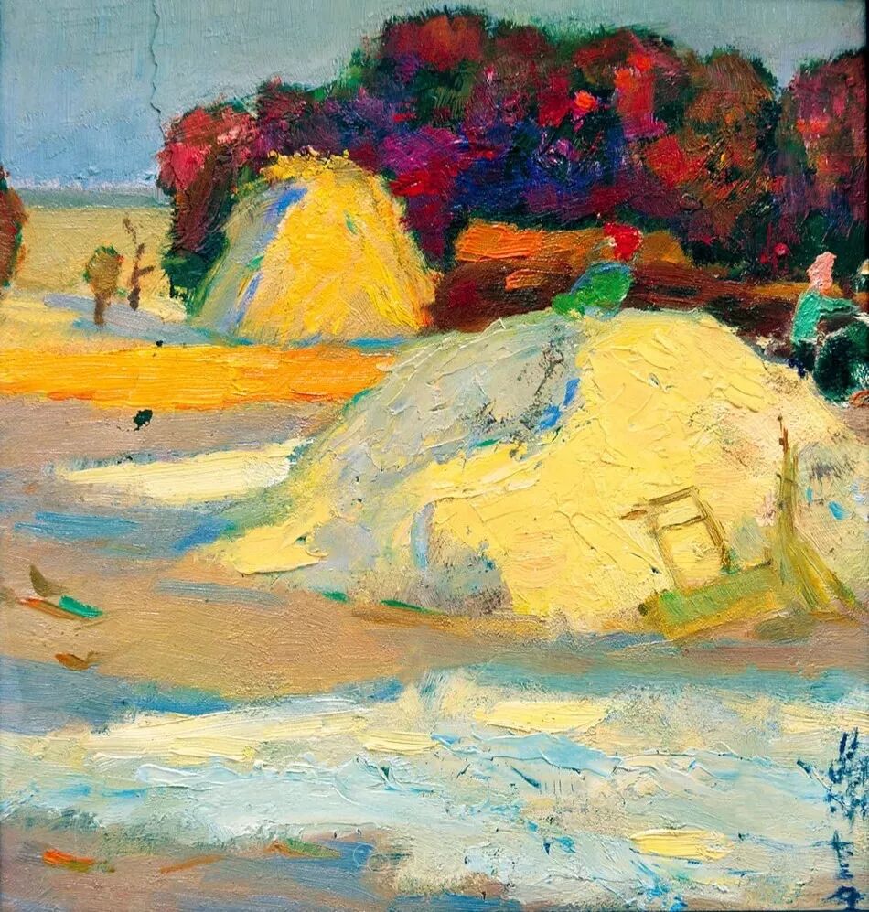 打麦场 14×24 cm (纸本油画) 1973年▼