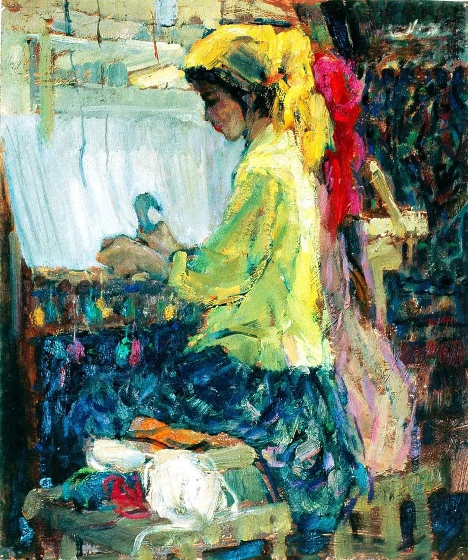 织地毯女工 30×30 cm (纸本油画)1978年▼