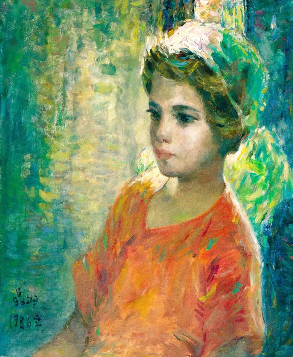 红头结少女 35×24 cm (纸本油画)1978年▼
