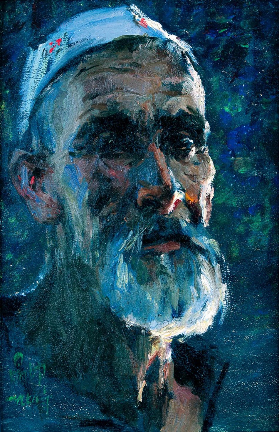 穿海魂衫的维族老人 32×20 cm (纸本油画) 1978年▼
