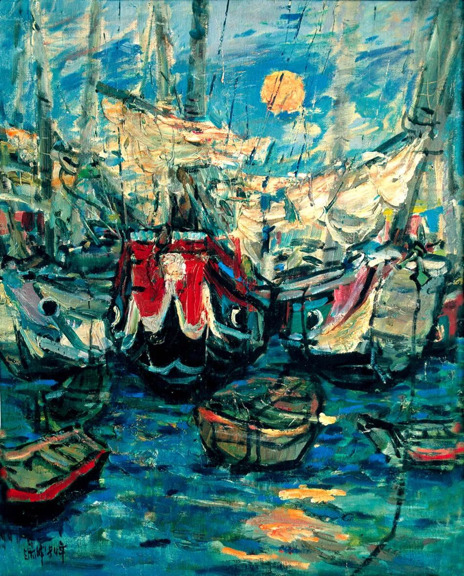 渔港日出 56×34 cm (布面油画) 1976年▼