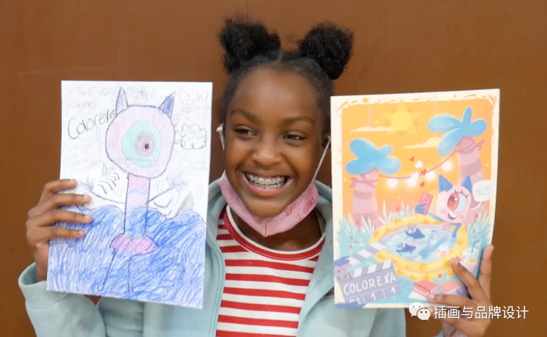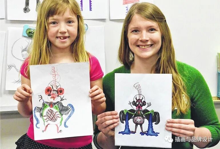 孩子们会先在纸上画出一个怪兽画,艺术家们会根据这些画为灵感,重新绘制一张专业的绘画作品。