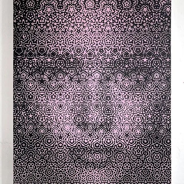 电脑自动生成人物肖像后,才是创作错觉肖像的第一步,接下来就是为肖像作品添加用于隐藏的图案,这些图案有圆形、菱形和方形等几何图形。李·瓦格斯塔夫的作品需要站在适合的距离,才能看到隐藏起来的人物肖像,在手机上去看这些作品,视力好的人只能看到几何图案,而有些近视眼的朋友,却可以看到完整的整幅肖像画。