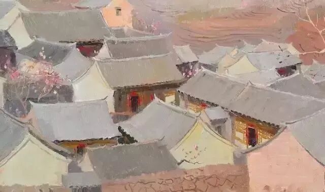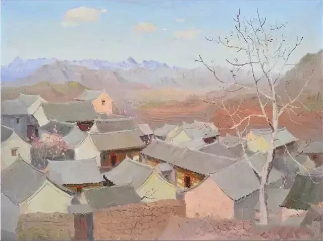 这幅作品可以说是吴冠中六十年代风景油画的经典代表作。他在画外题识:“山里人家,安于本分生活,永葆自家颜色。”