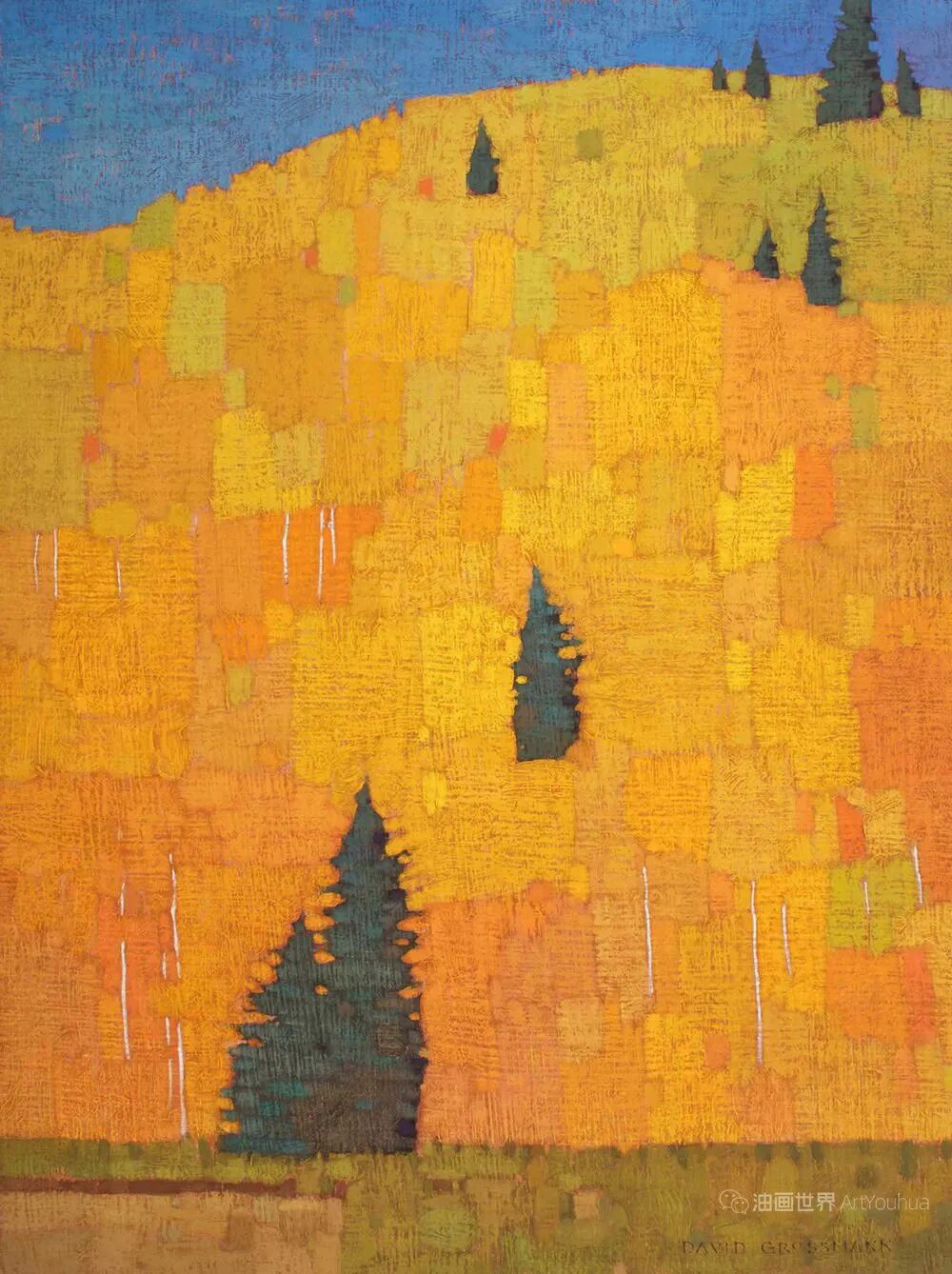 大卫·格罗斯曼(David Grossmann)美国画家,1984年出生于美国科罗拉多州,但在智利长大。一直以来,艺术一直是格罗斯曼生活中的重要组成部分,而他作为年轻画家的第一堂课来自他的母亲和祖母。他通过博尔德的科罗拉多艺术学院以及著名的风景画家杰伊·摩尔(Jay Moore)接受了更为正式的教育。作为一名画家,他的冒险经历将他带到了世界的许多地方。他现在再次居住在科罗拉多州,在那儿,他和他的妻子克里斯蒂(Kristy)在周围的风景中找到了无穷的灵感。