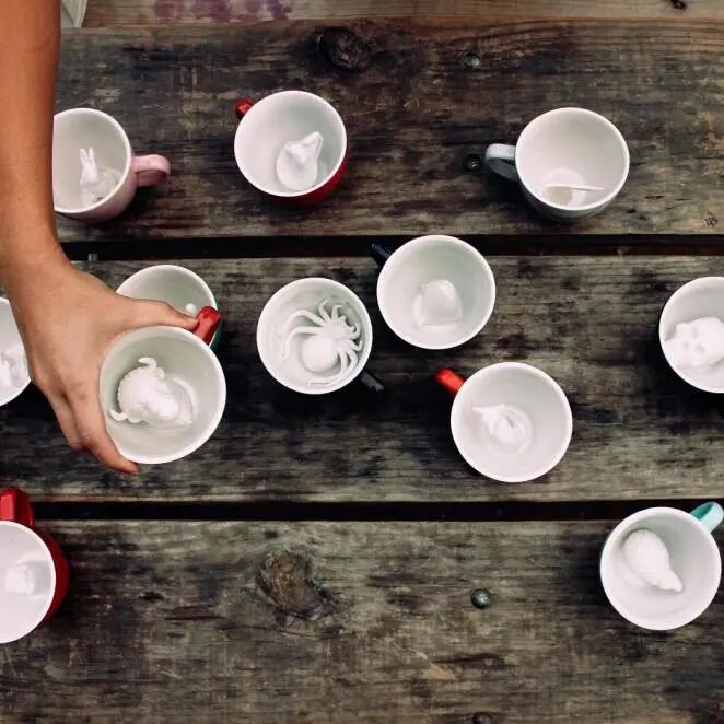 接下来小绛要介绍给大家的这一组设计作品,就非常独特,来自美国得克萨斯州的一个设计师团队,制作了有趣,且富有创意的咖啡杯,与传统杯子不同的地方是,这些咖啡杯的杯底,藏着很多野生动物。