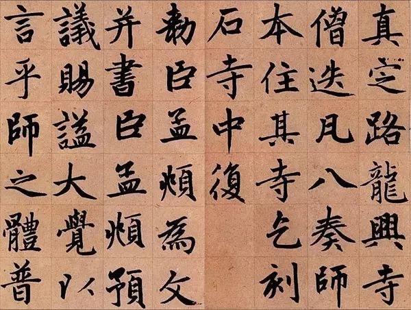 《妙严寺记》,又称《湖州妙严寺记》,牟献撰文,赵孟頫书并篆额,原件纸本横卷,运笔匀称,笔势圆劲流丽,结构布局端庄秀美。为赵孟頫楷书之代表作。