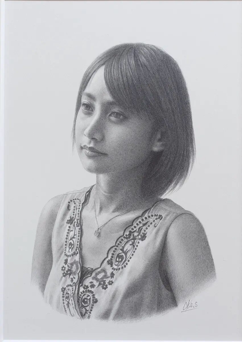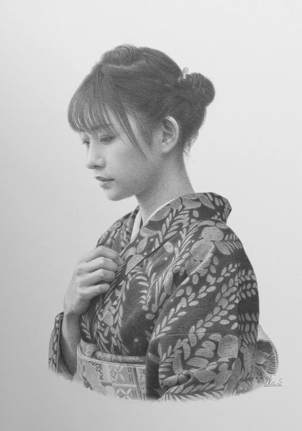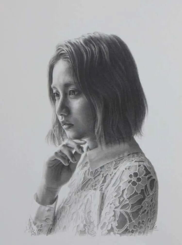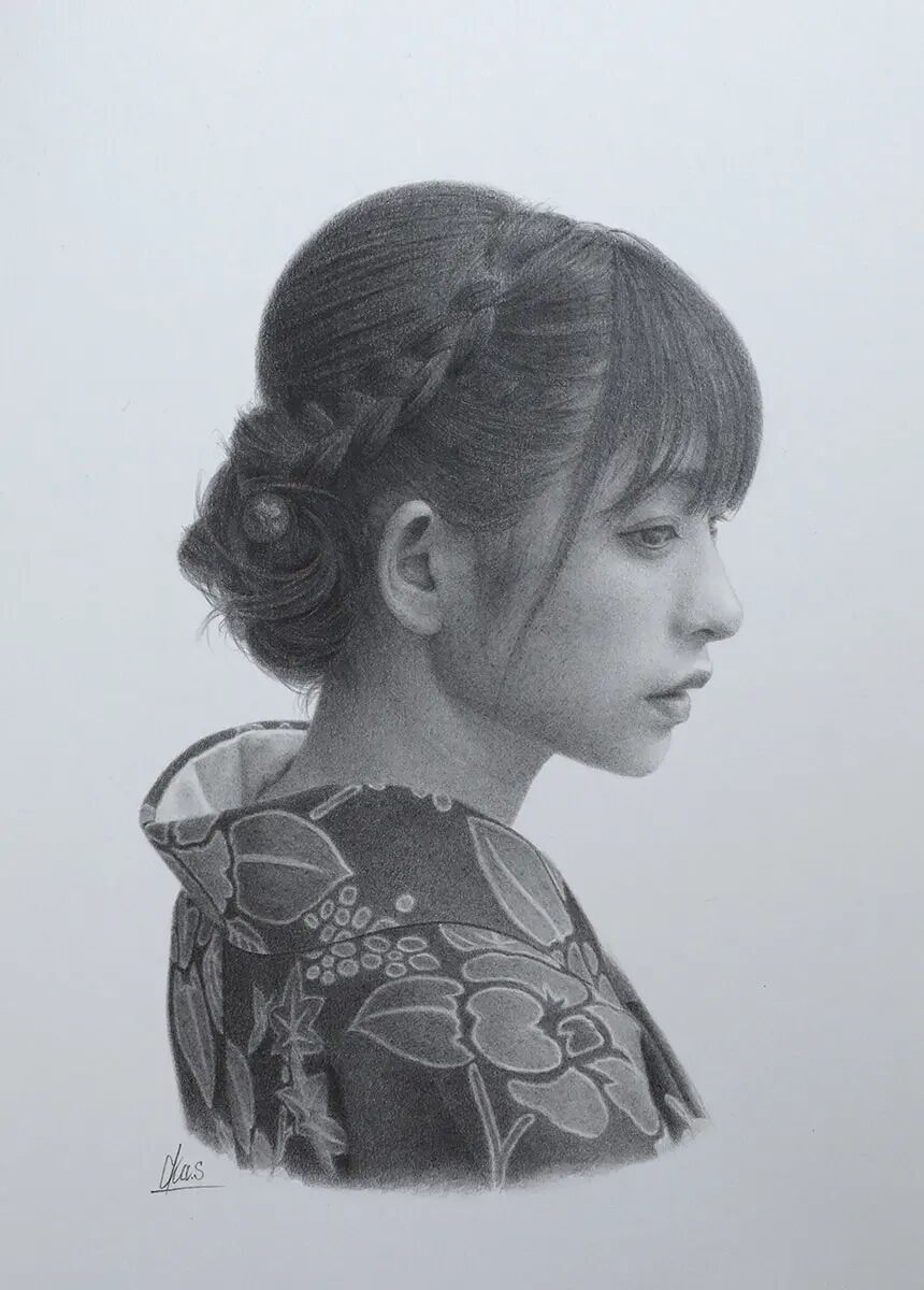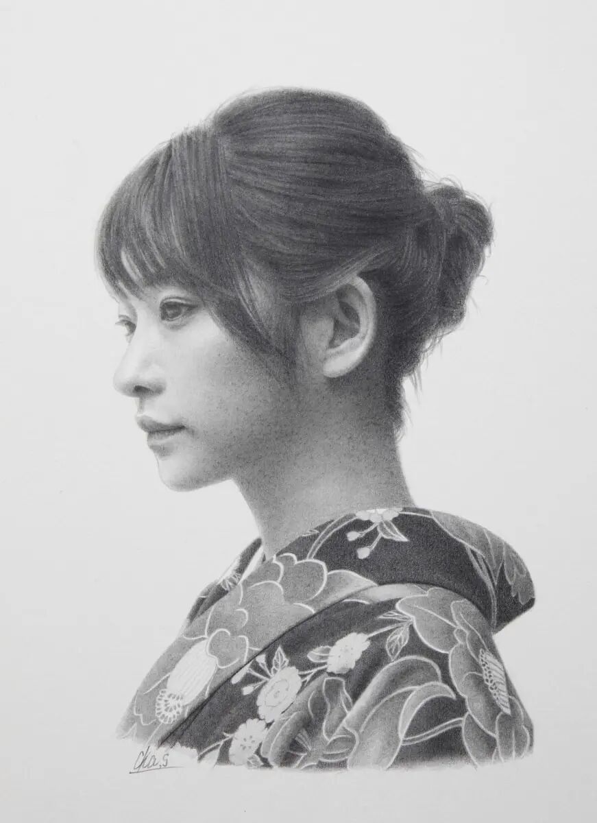 除了超写实油画之外,冈靖知的超写实素描也同样让人惊艳,今天小绛要介绍给大家的,就是这位日本“冷军”创作的一系列超写实素描肖像作品,冈靖知用细腻的笔触,将日本女性的温柔、优雅一点点呈现出来,每一个面部特征、头发、皮肤,甚至衣服的面料,都真实地还原出来。