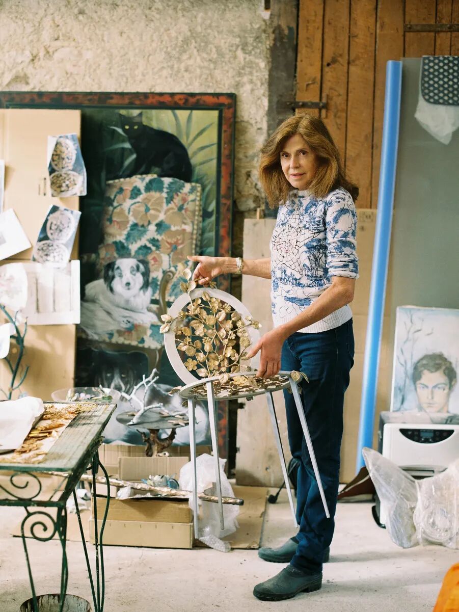 建筑设计师India Mahdavi擅长运用艳丽色彩和弧形线条,由她去糅合路易十六风格再合适不过了。她以羊毛钩编工艺塑造出的缤纷图案,铺陈于印度克什米尔手工刺绣面料之上。一改过去的“迪奥灰”,这一组《杰尔巴,花朵,天鹅,鸢尾,蟒蛇》满是都会的欢愉。