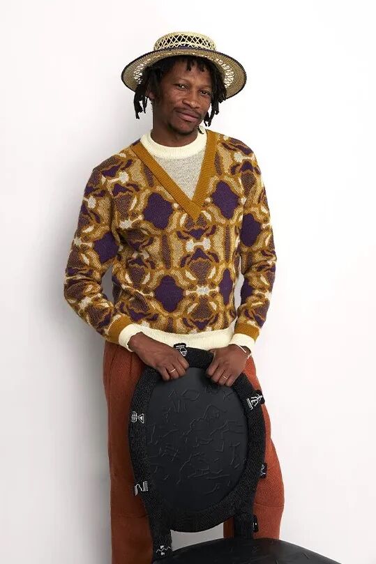 还有开普敦自学成才的瓦纳族艺术家Atang Tshikare的背椅叫《Dinaledi》,在他的母语里是“星辰”的意思。他选用植鞣皮革,经压花工艺饰以浮雕的星座图案,呼应Dior先生对于星座和神学的痴迷;同时,他将非洲春季在南北半球对齐的星座化为象征符号,缀以黑白两色圆珠,代表周围世界静待发现的万千奥妙。
