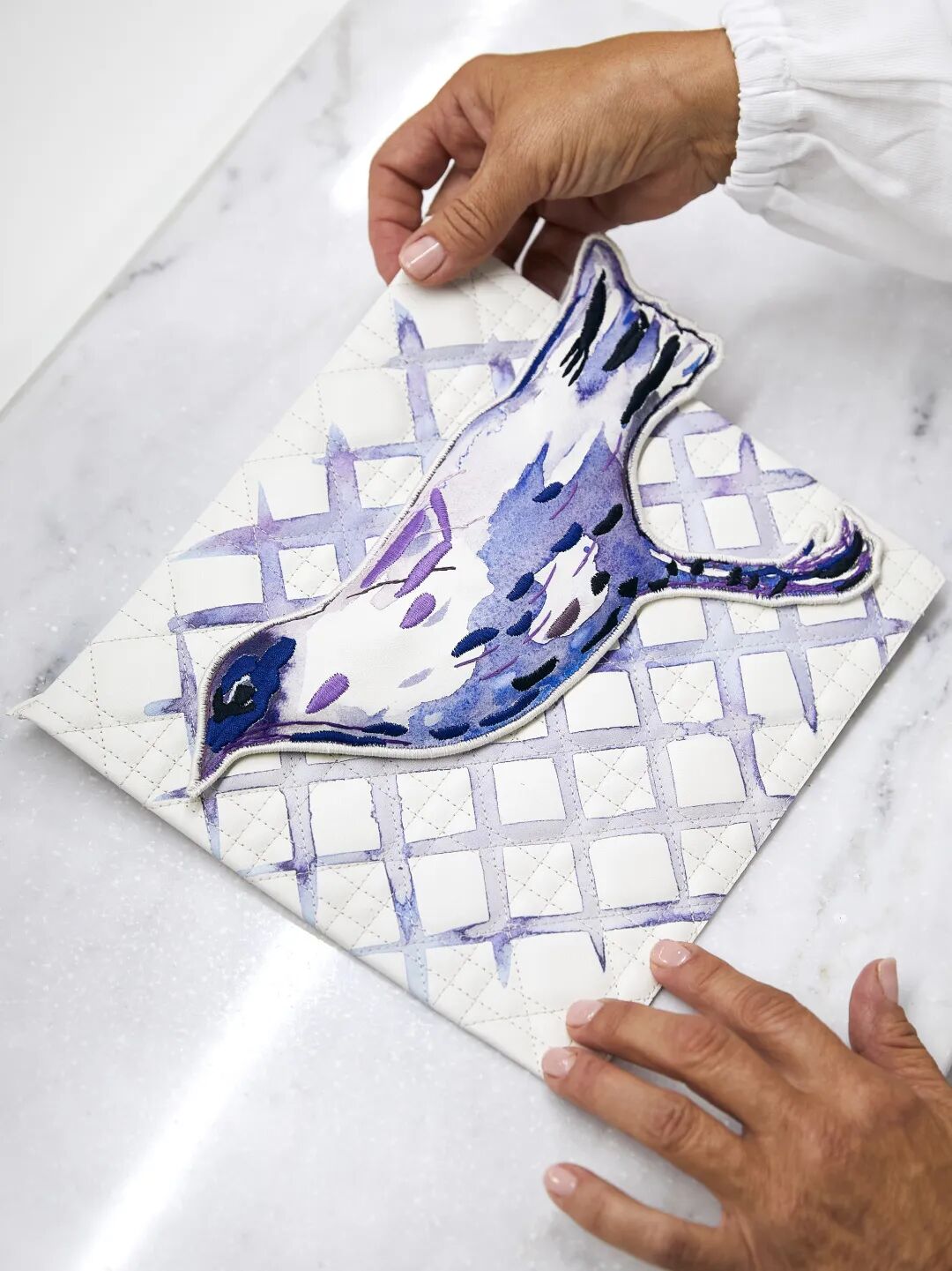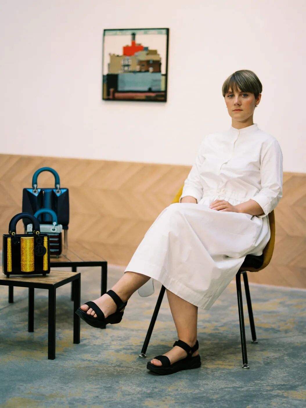 俄罗斯艺术家Zhenya Machneva本就毕业于面料设计专业,三款手袋的包身与内衬均以刺绣点缀。她运用几何线条赋予它们建筑和雕塑感——想象能拎起“一幢建筑”的女人有多了不起。她在创作中描绘出社会加诸于女性身上的种种苛求,以此反思女性的地位。