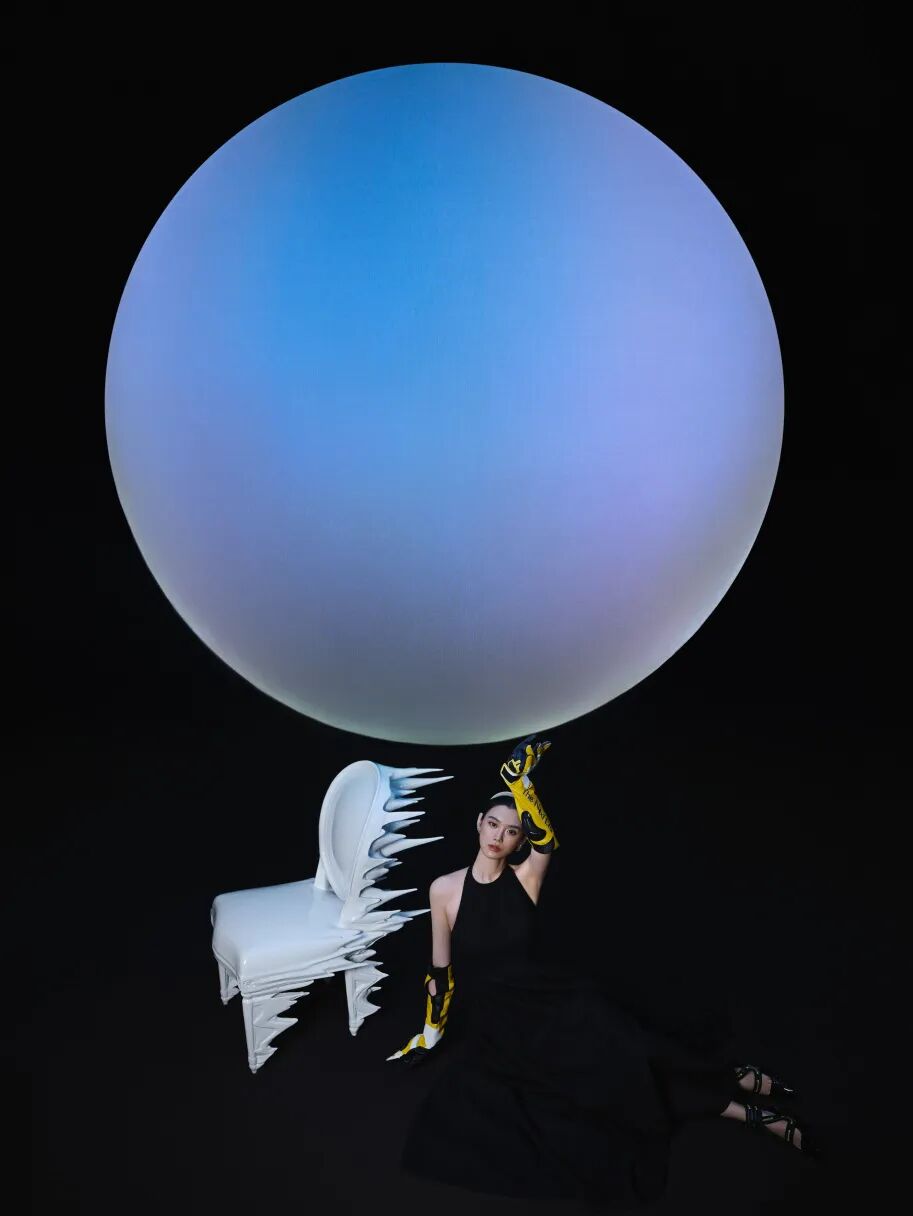 除了张如怡,还有杨冕模拟三原色光的复合效果,将Lady Dior手袋化作一个有斑斓光线、忽明忽暗的“盒子”;而鲍杨与刘娃将其化作一只音响,并且其实它是真的有声音的,只是隔着玻璃柜并不能听到音乐。