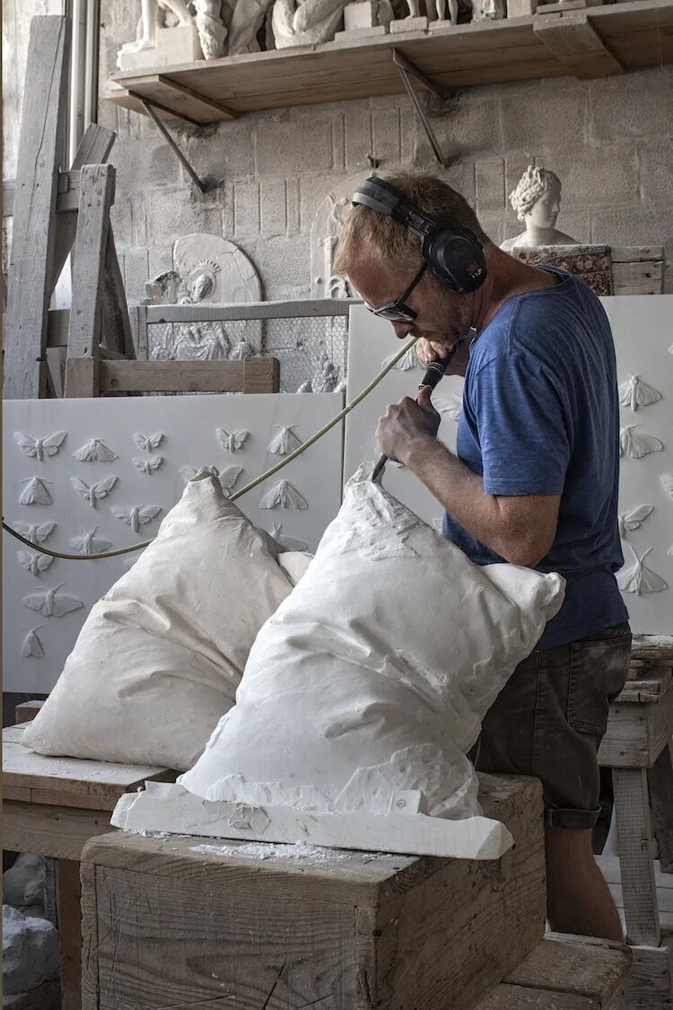接下来,就让我们一起来欣赏一下这位特别的雕塑家,雕刻而成的特殊雕塑作品吧,相信在看到这些大理石枕头后,一定能让你感受到艺术的魅力,见证艺术家是如何用自己的创作技巧,一把锥子,一把气锤枪将坚硬的大理石,变成“柔软”的枕头吧。