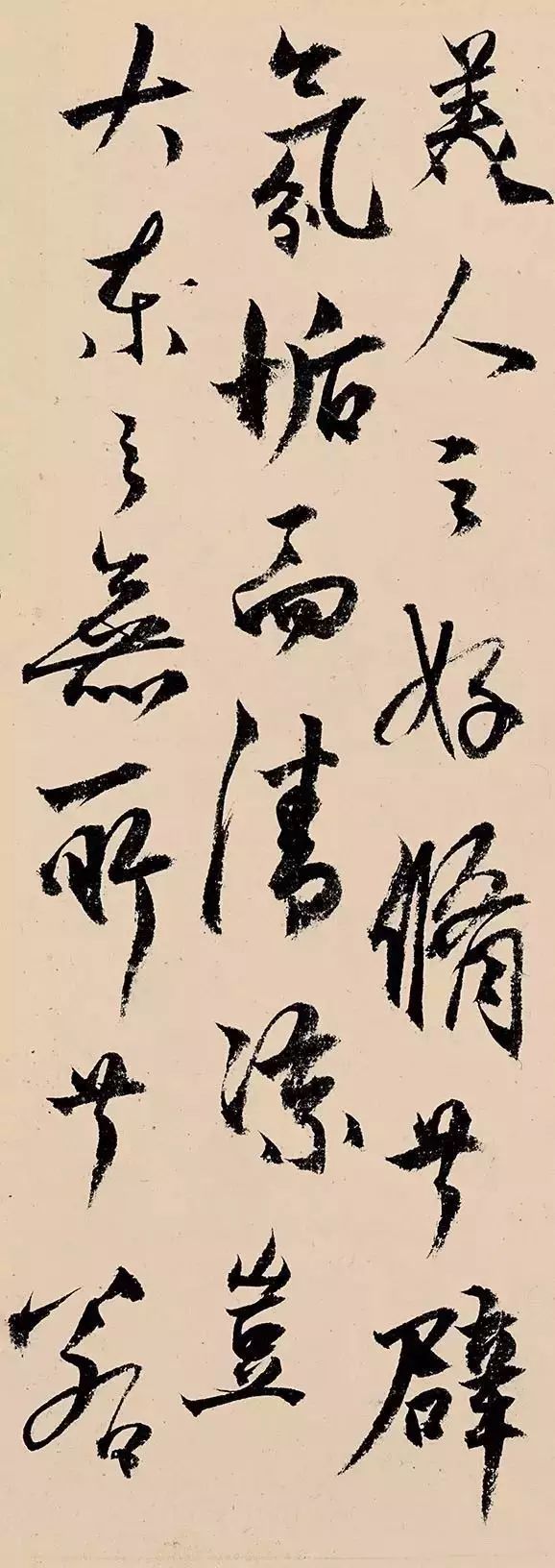 书法的抒情性在他这里得到充分的张扬。他主张诗品、画品、书品与人品作统一观,认为书法无异于人品。于此,我们也找到了他怪异书风的精神来源。