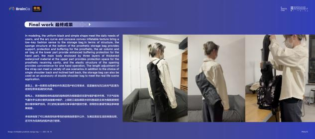 这是我第一次在接触到假肢用户,了解了他们的需求和使用行为之后,设计制作出的一款充气式假肢收纳产品。它可以为单臂义肢用户提供更为轻便的携带工具,同时提供单独携带和与双肩包组合使用的两种功能属性。