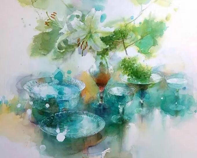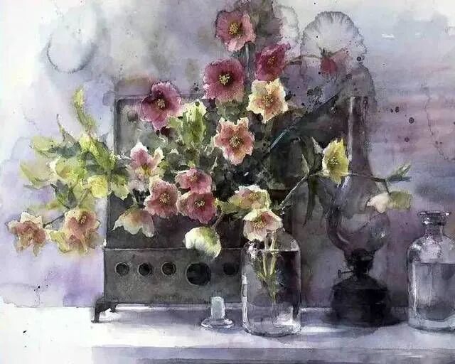 永山裕子的水彩作品色彩清淡,画风在写实和写意之间,极富诗意,情感浪漫细腻。放眼望去,不禁被浓郁而高雅的色彩所打动,慢慢感受色彩和水彩艺术的魅力。