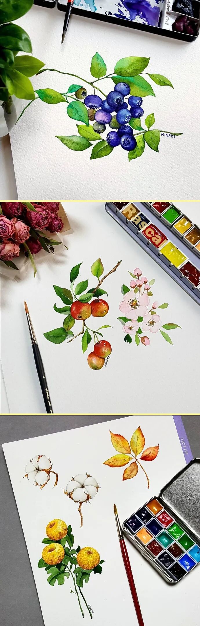 原来,水彩可以与我们生活 离得如此之近 最后,看完Mina Park Minatu笔下 这些迷人的花卉与瓜果 你是否已经跃跃欲试了呢?