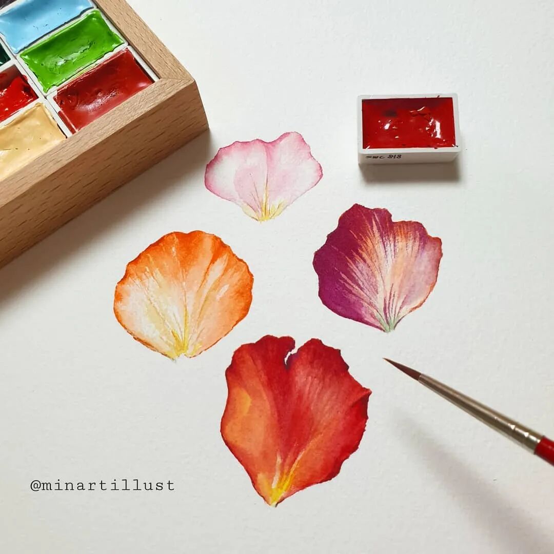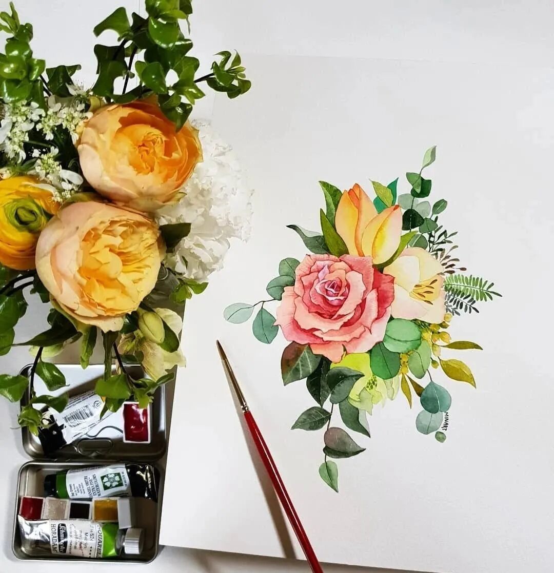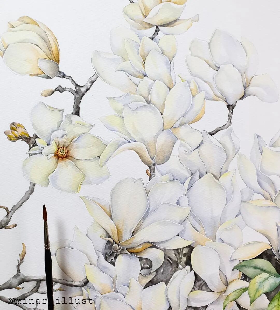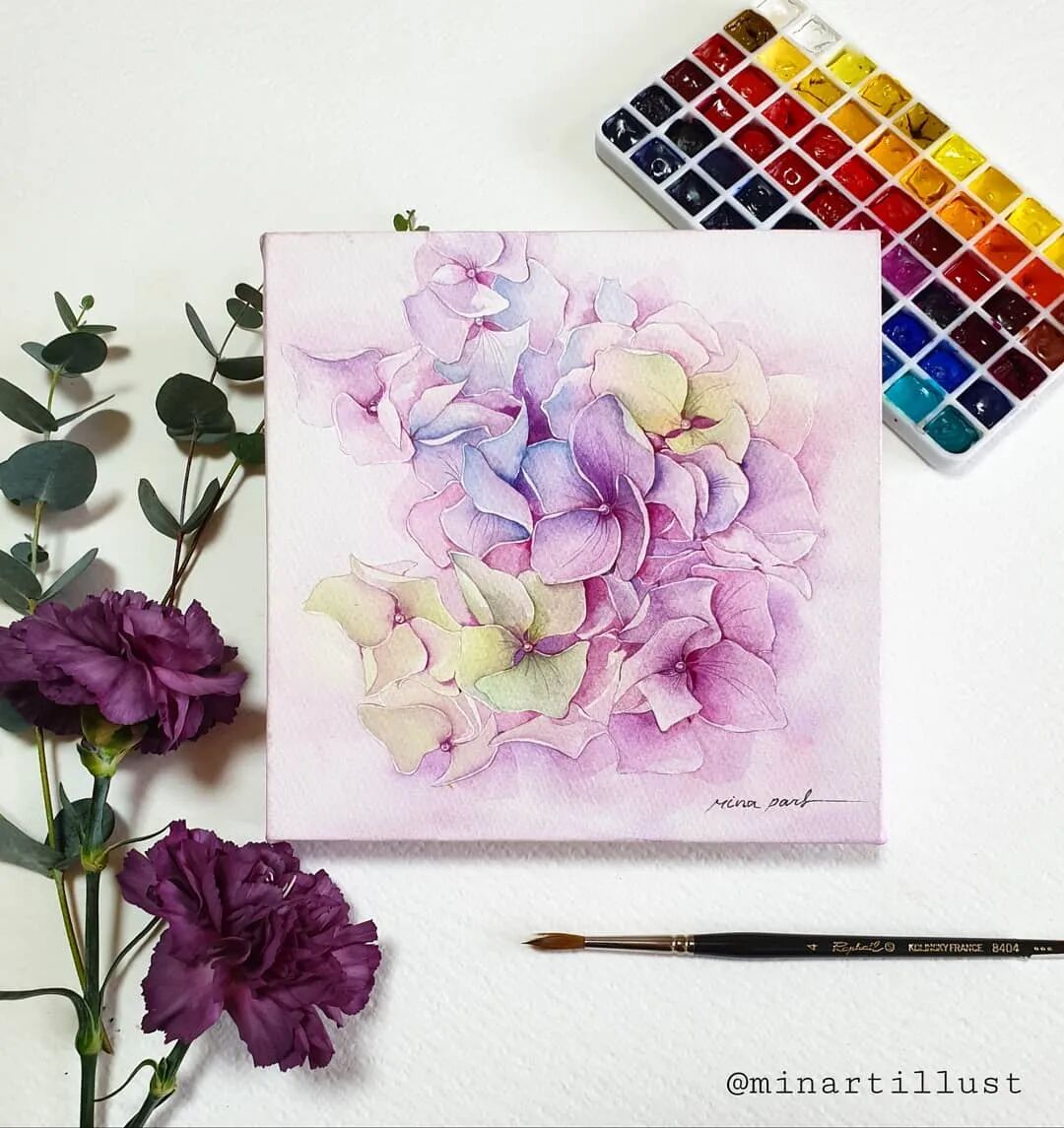 Mina Park Minatu画画非常有耐心 描绘的每一层花瓣,都很有层次 细腻且看不到一丝笔触 颜色干净、通透,简直美极了~