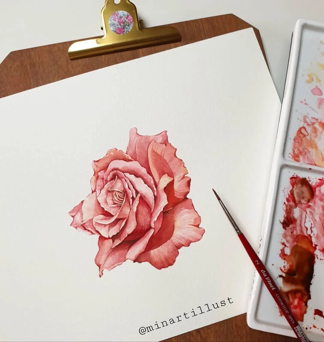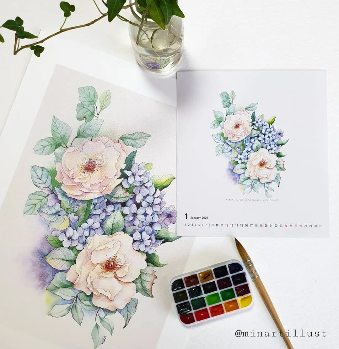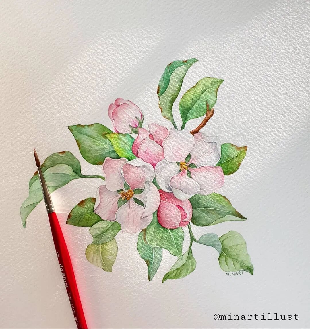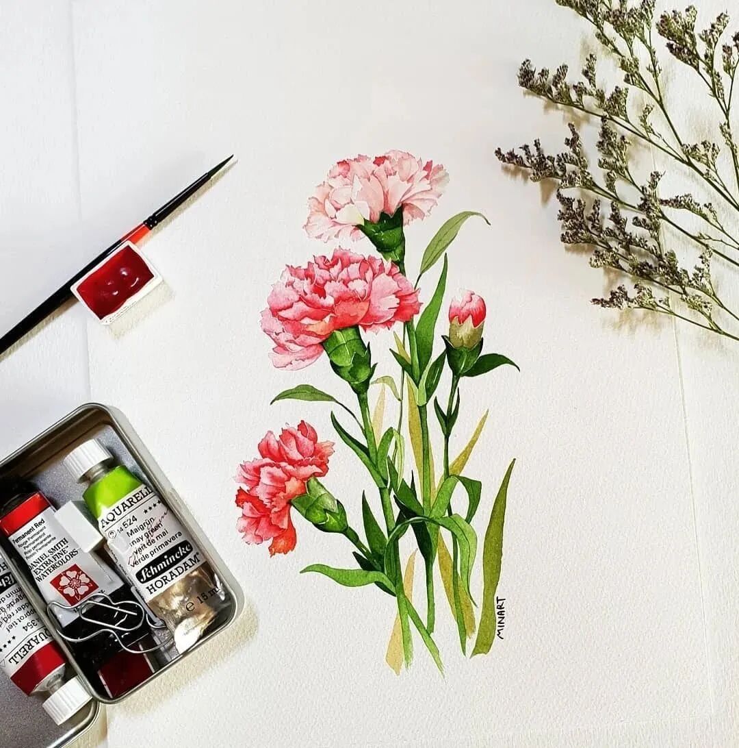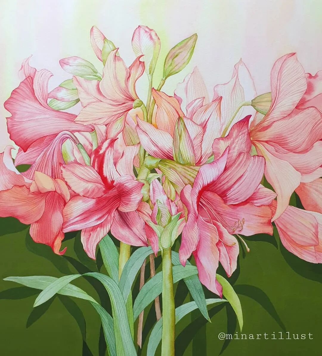 Mina Park Minatu画画非常有耐心 描绘的每一层花瓣,都很有层次 细腻且看不到一丝笔触 颜色干净、通透,简直美极了~