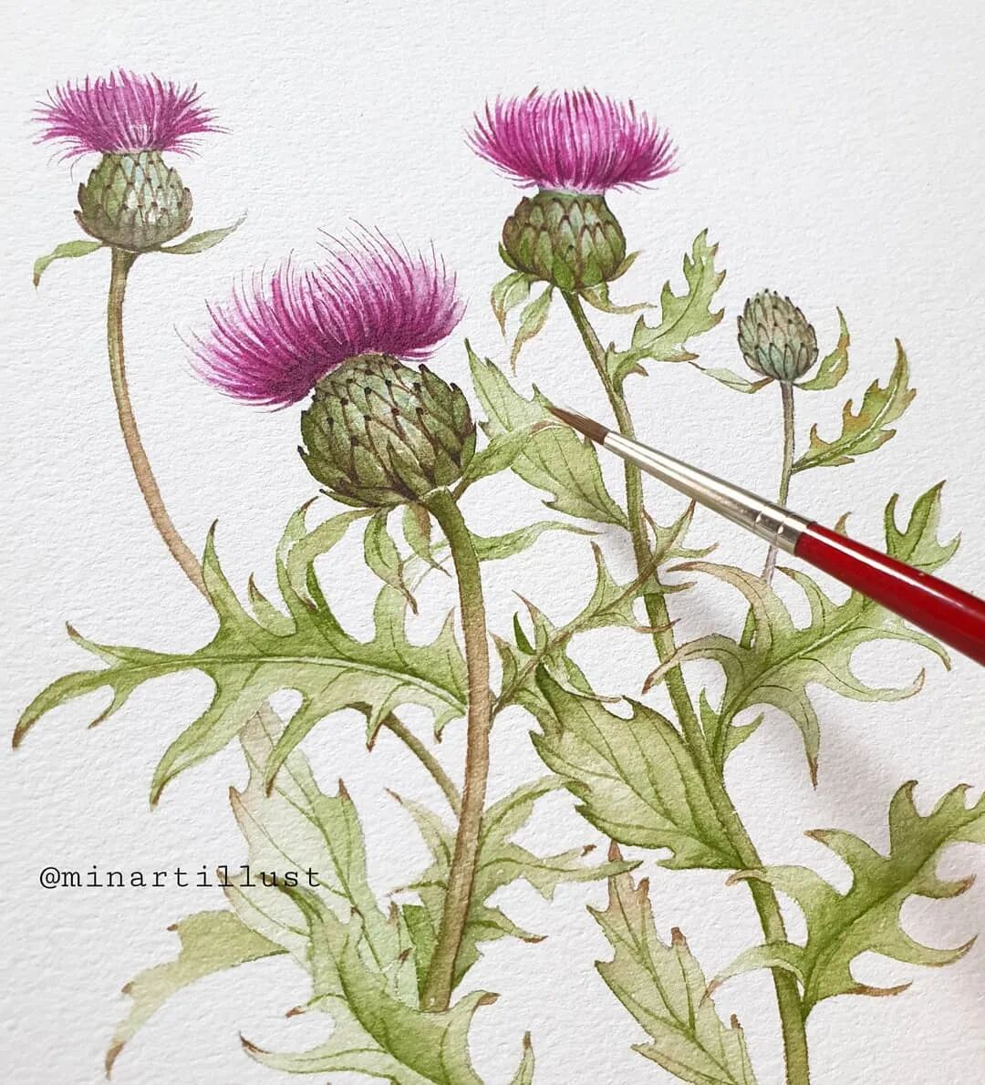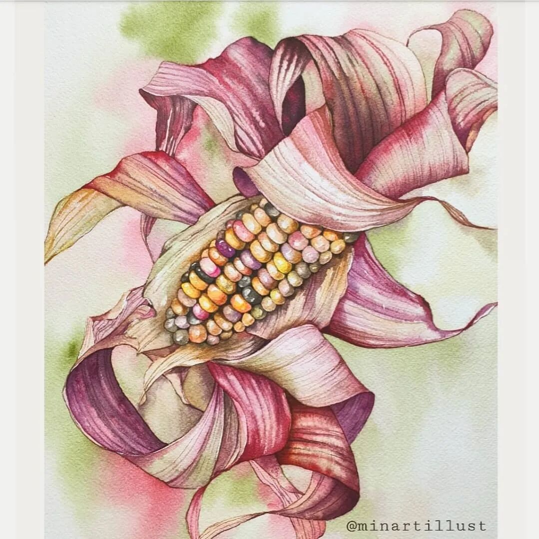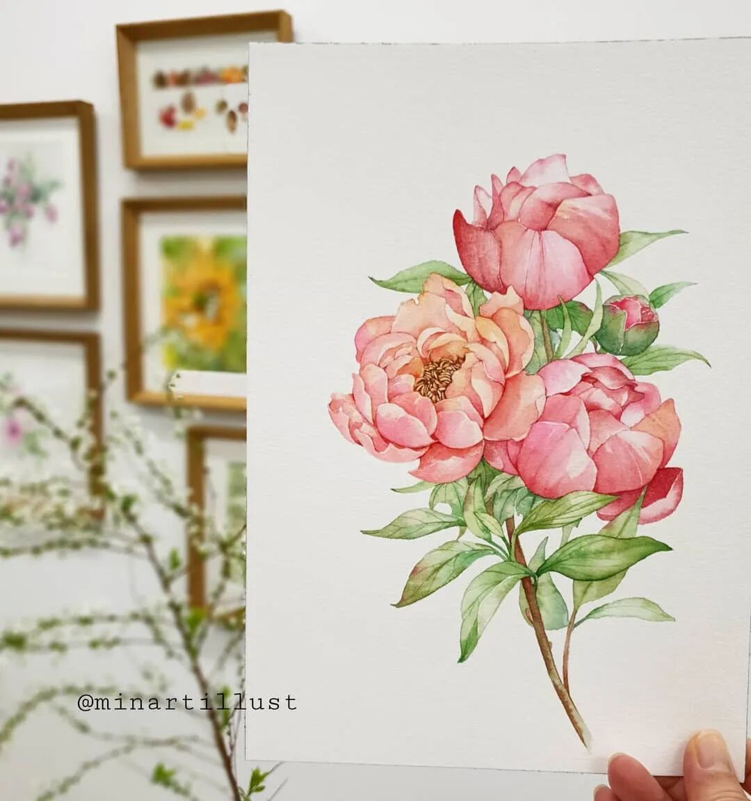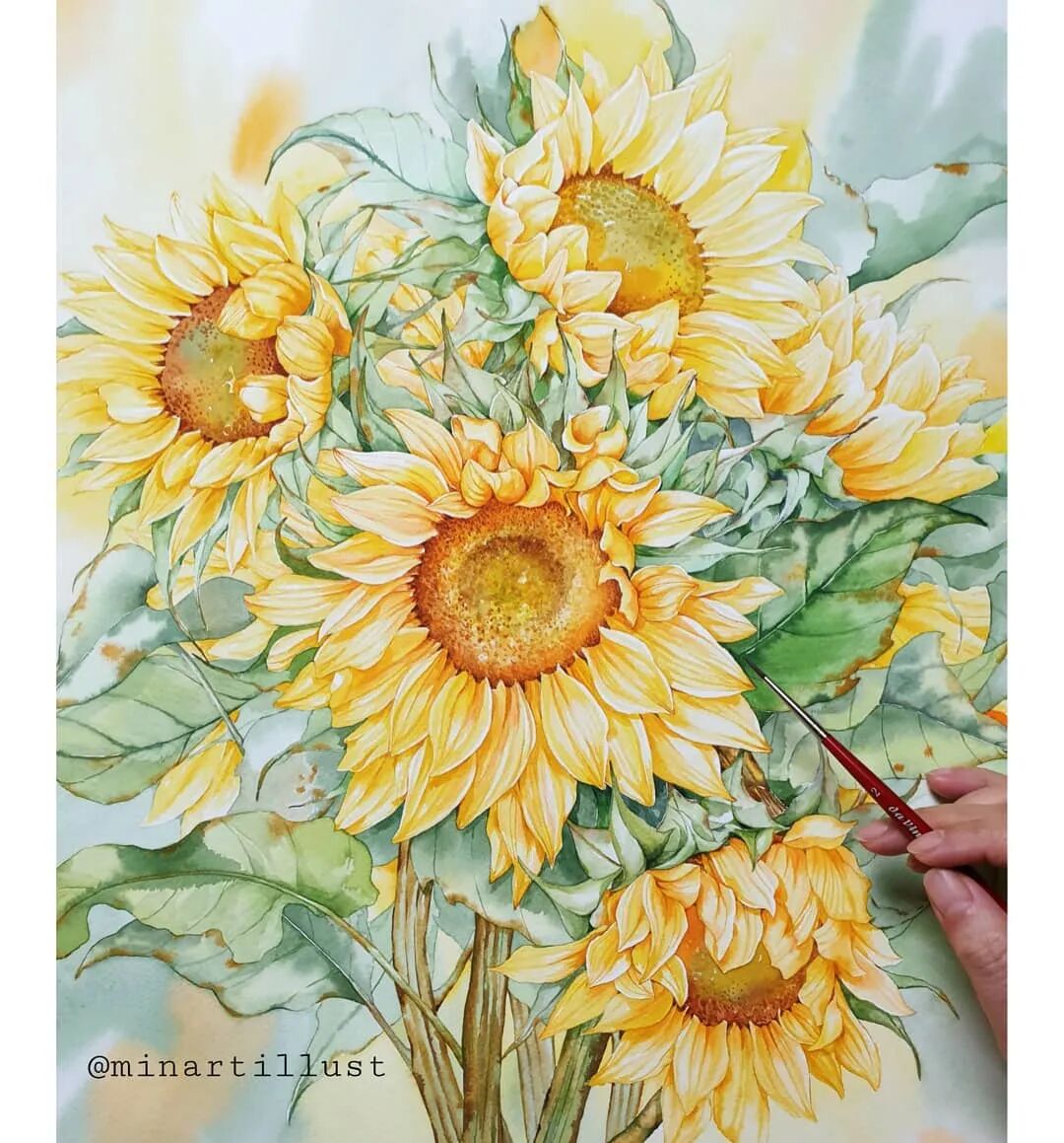 Mina Park Minatu画画非常有耐心 描绘的每一层花瓣,都很有层次 细腻且看不到一丝笔触 颜色干净、通透,简直美极了~
