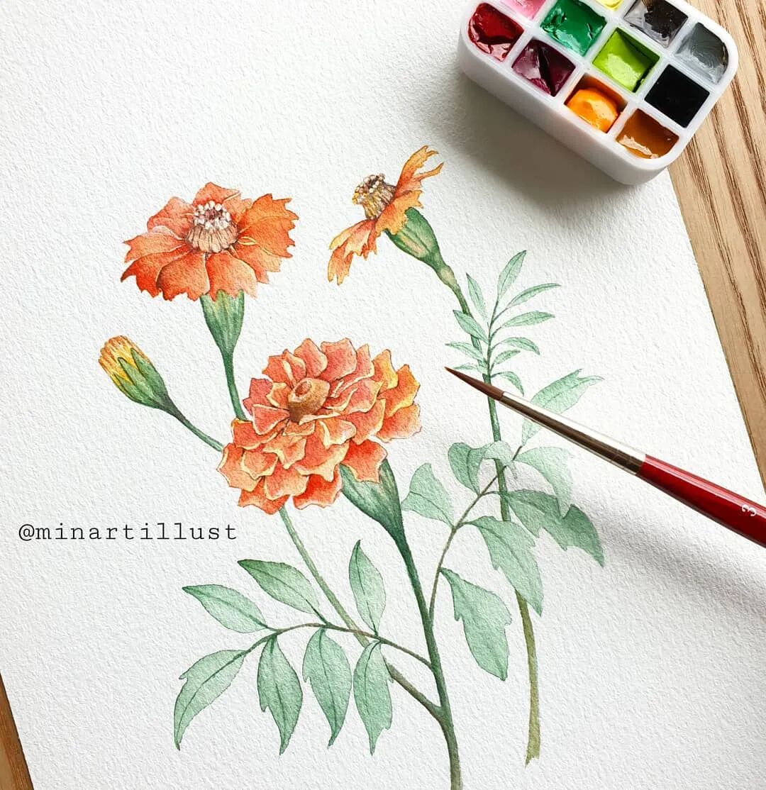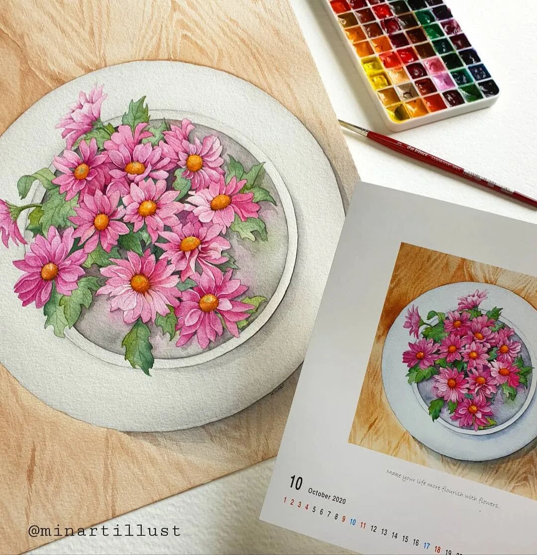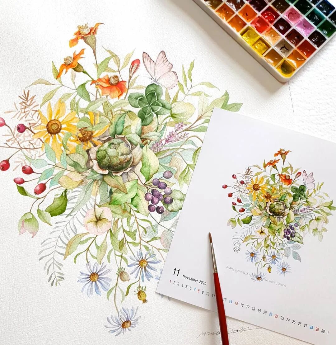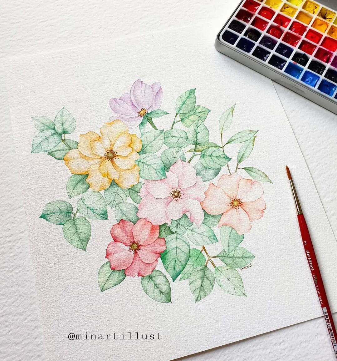 她用简单的水彩画笔 一点点的给花儿注入生机 让它们以最美的姿态呈现 网友都亲切地称她为“花朵老师” 她,就是来自韩国的90后 原本学的是经济学,因为喜欢水彩 天赋+努力,让她创作了一幅幅精美水彩作品 目前女插画师、水彩教师 Mina Park Minatu