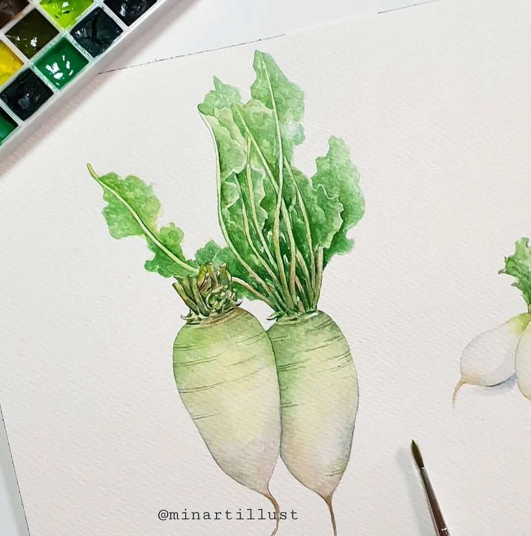 这些树上的瓜果、蔬菜 每一个在Mina Park Minatu的笔下 都变得新鲜可口,让人不禁垂涎欲滴~