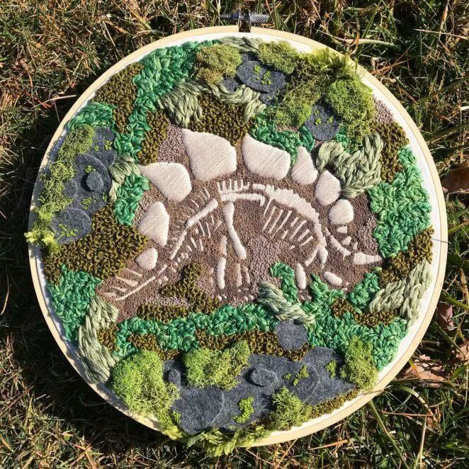 接下来,就让我们一起来欣赏一下,这位以恐龙化石为主题进行刺绣创作的艺术家,给我们带来哪些精彩的刺绣作品吧。
